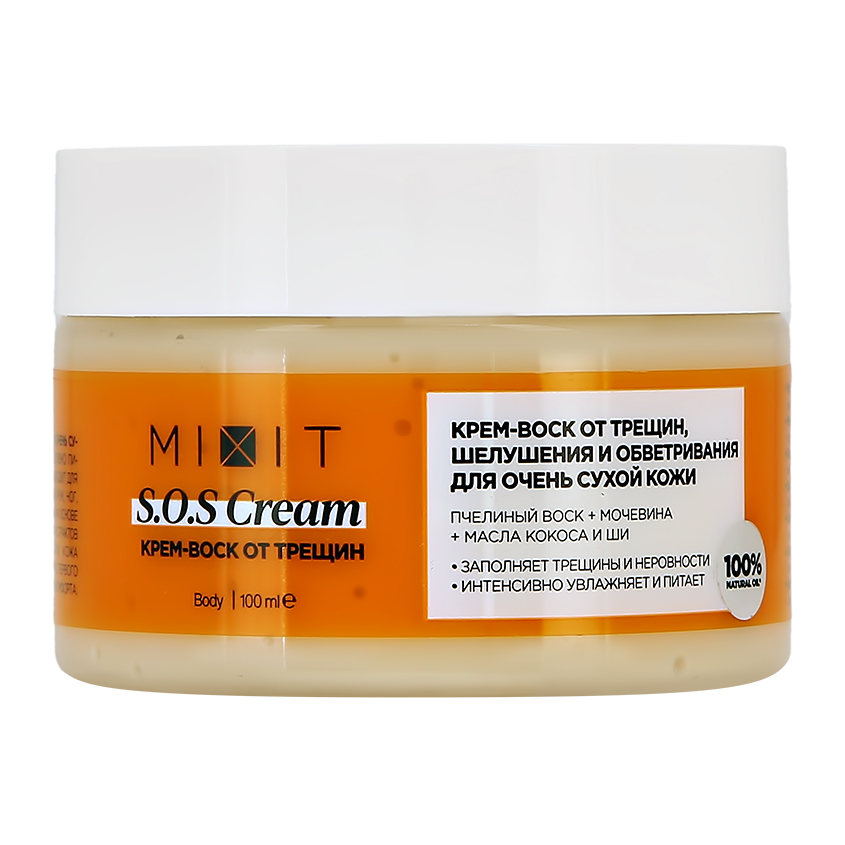 Купить MIXIT Крем воск увлажняющий питательный от трещин и шелушений для очень сухой кожи рук и ног, 100 мл