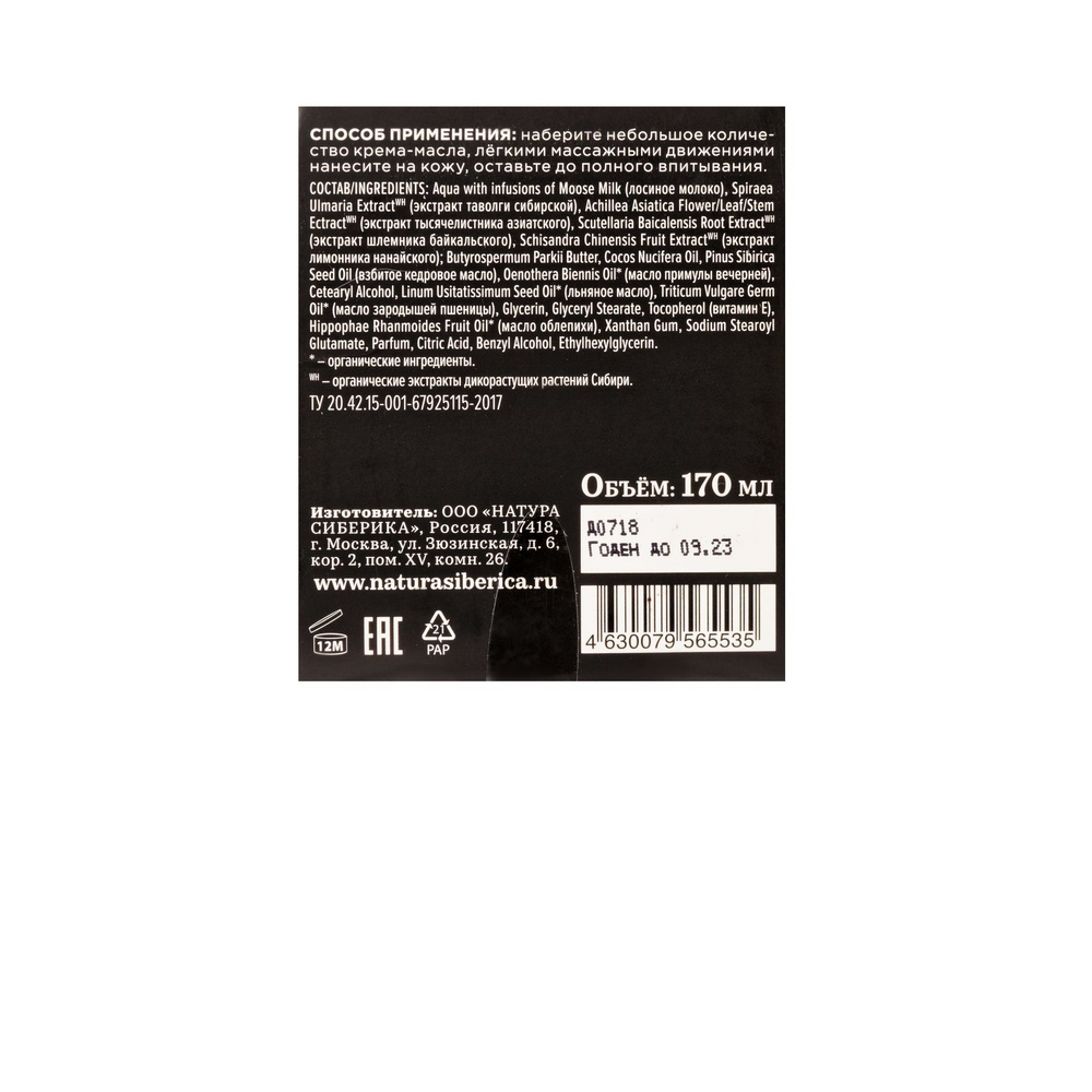 | Дополнительная информация | Побалуйте себя домашней SPA-программой на основе настоящего лосиного молока и натуральных сибирских ингредиентов, собранных в чистейших регионах сокровенной Сибири, Программа разработана специально для полноценного питания и восстановления упругости и гладкости кожи, Комплекс домашних бьюти-процедур не просто вернёт коже молодость и сделает ее бархатной, но и подарит ценные моменты восстановления внутренних ресурсов и эмоциональной гармонии, Питательное крем-масло для тела на лосином молоке – прекрасный вариант заключительного этапа ритуала красоты, Взбитое масло сибирского кедра, богатое витаминами E и F и жирными Омега 3-6-9, интенсивно питают кожу, Экстракты сибирской таволги и ягод амурского бархата глубоко увлажняют кожу, Результат – ухоженная, бархатная кожа, как после профессионального SPA. |