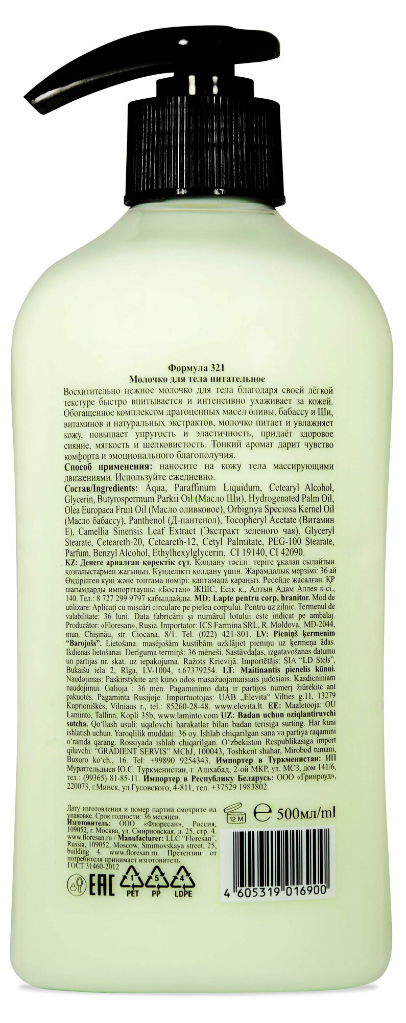 Купить Floresan/Молочко для тела питательное, Оливковое, 500 мл.