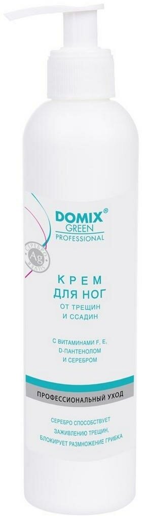 Domix Green Professional Крем для ног от трещин и ссадин с витаминами F, E, D-пантенолом и наносеребром 250 мл