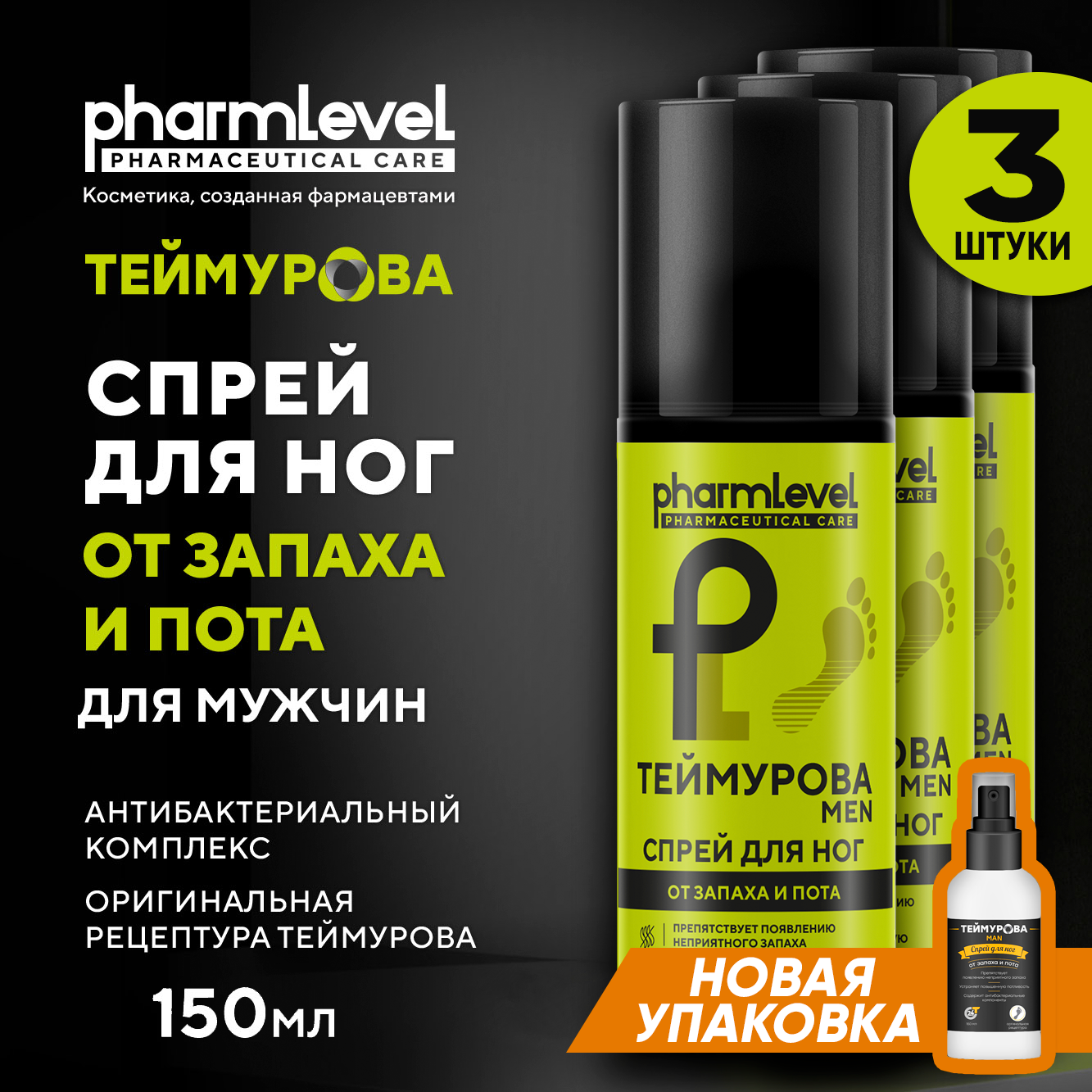 Дезодорант для ног от запаха и пота теймурова MAN 150 мл / Мужской - 3 шт. интересное: