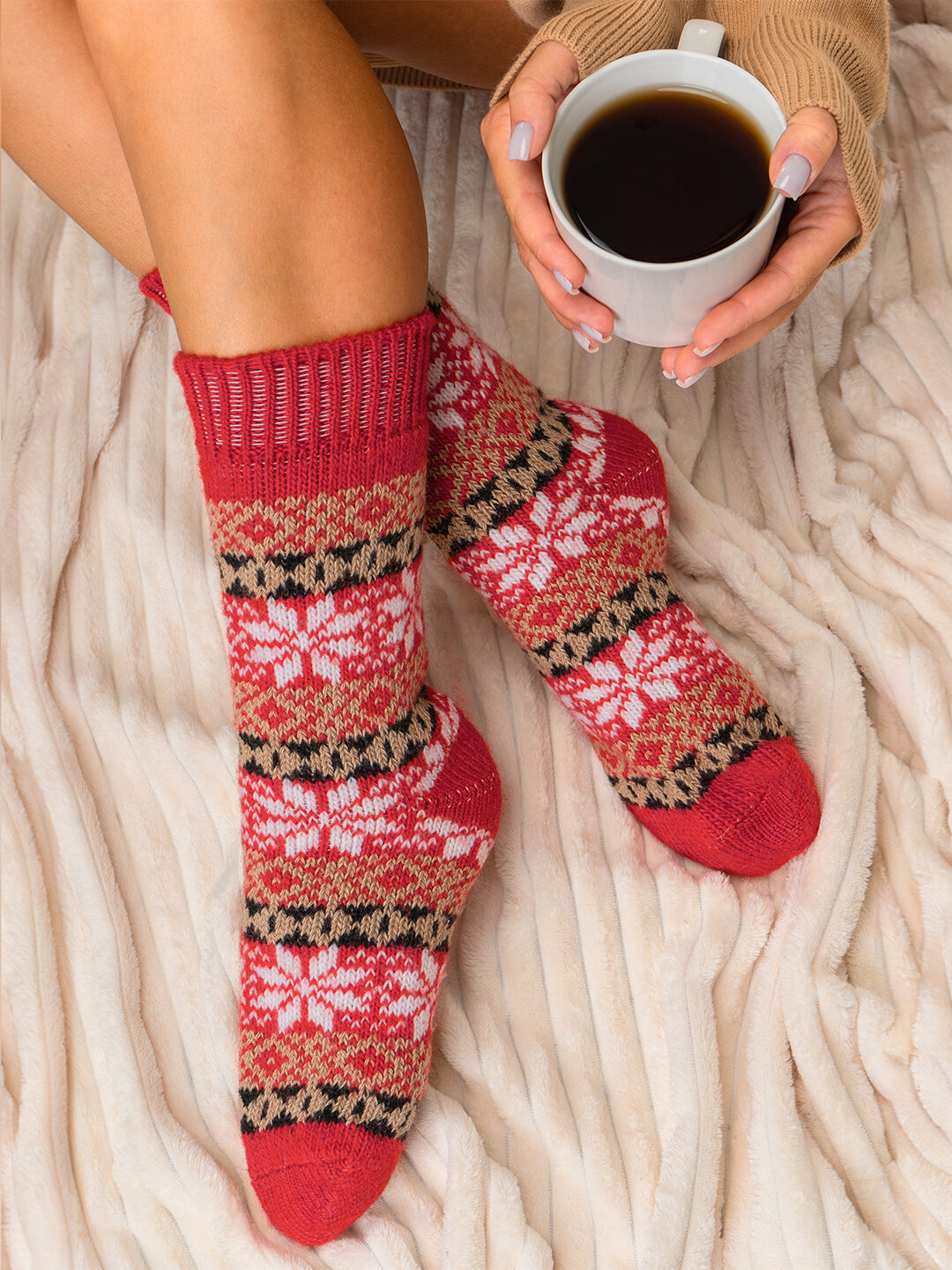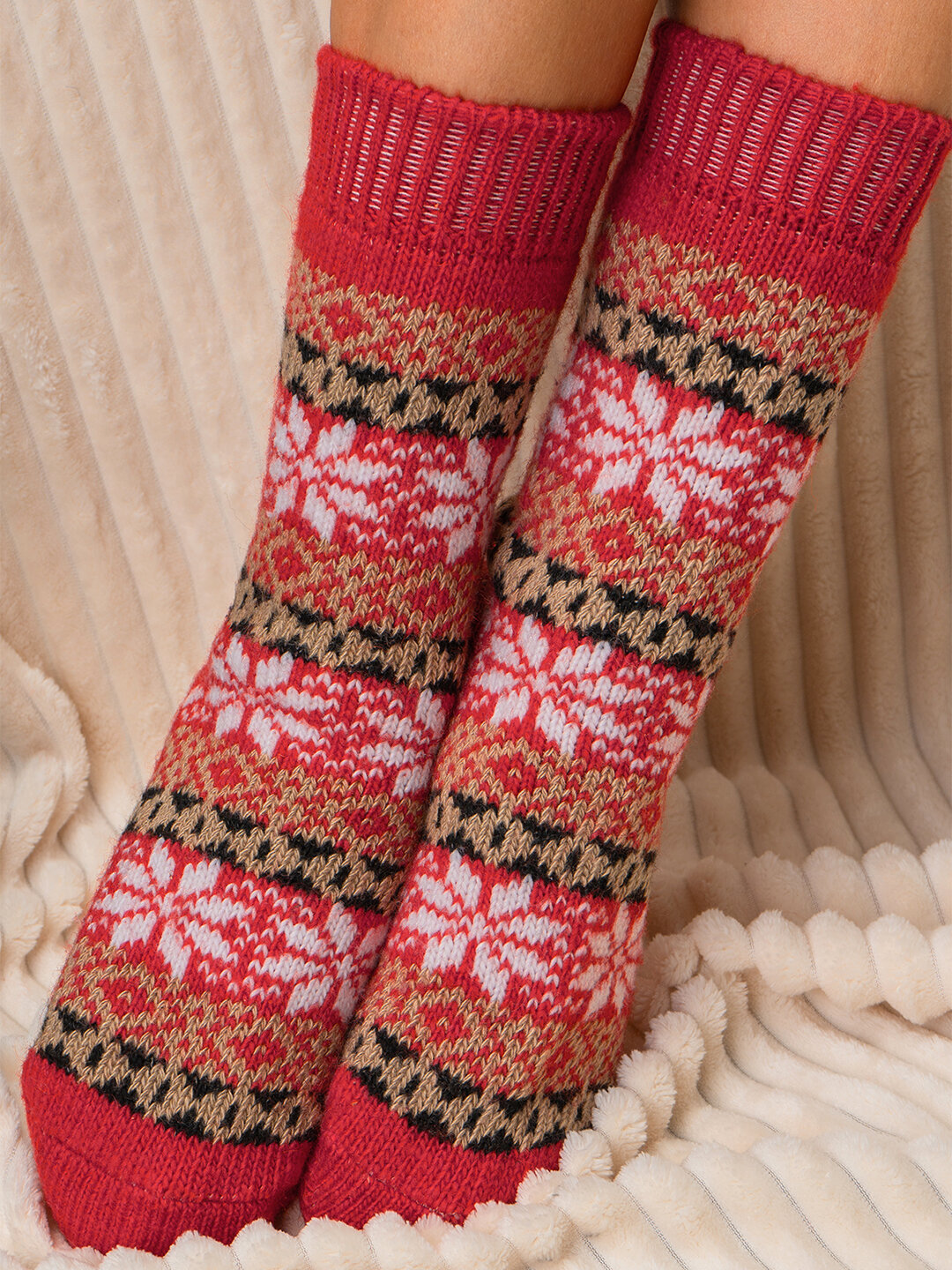 Носки женские шерстяные зимние с рисунком HappyFox HFBN2317 узоры.красный 37-40