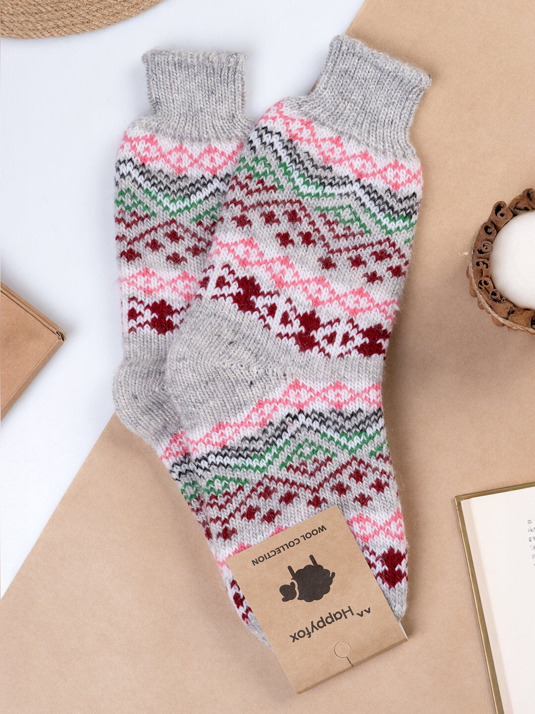 Носки шерстяные зимние с рисунком HappyFox HFBN2317 орнамент.красный 37-40