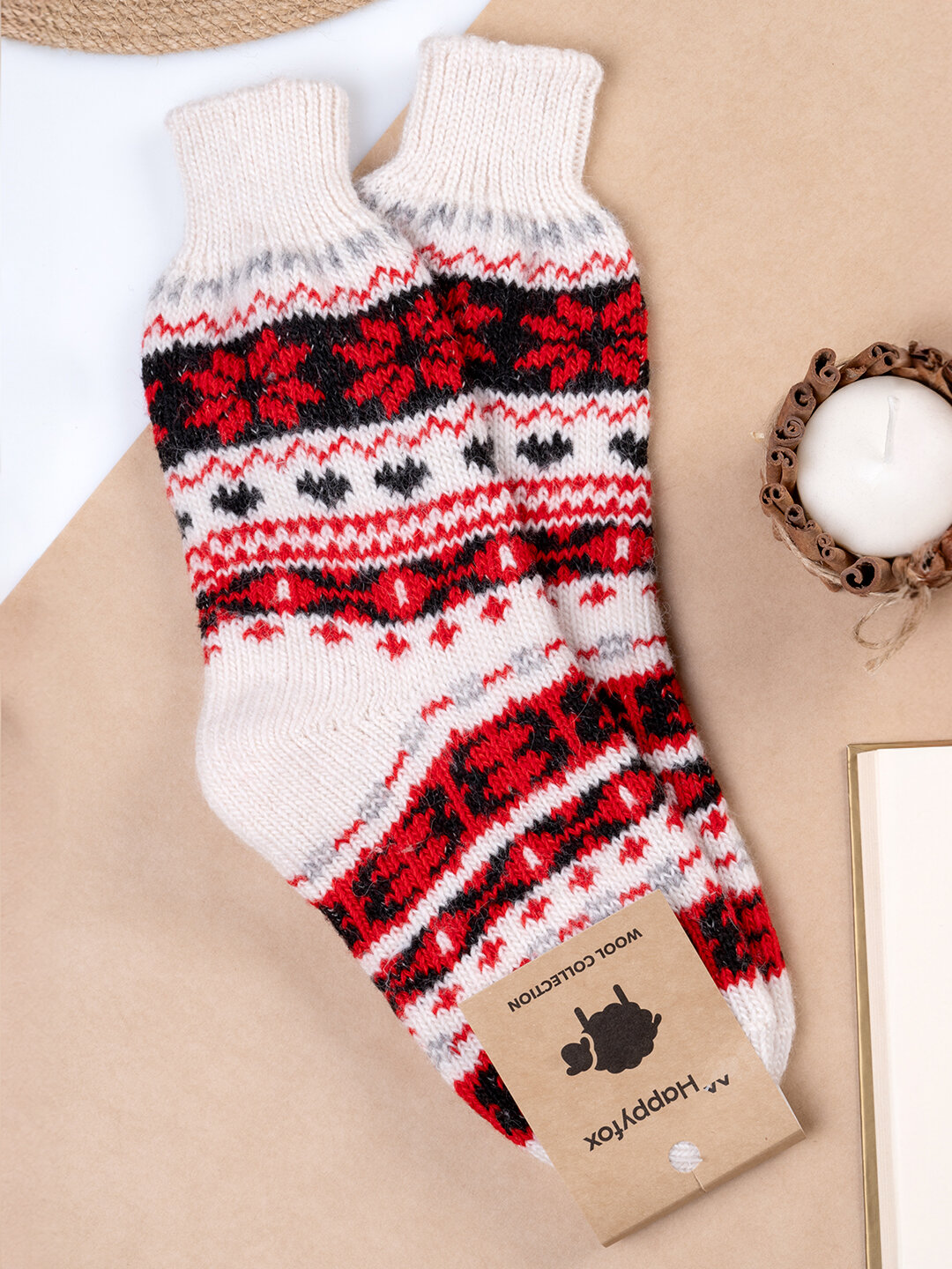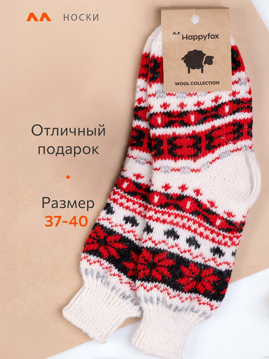 Носки шерстяные зимние с рисунком HappyFox HFBN2317 орнамент.красный 37-40