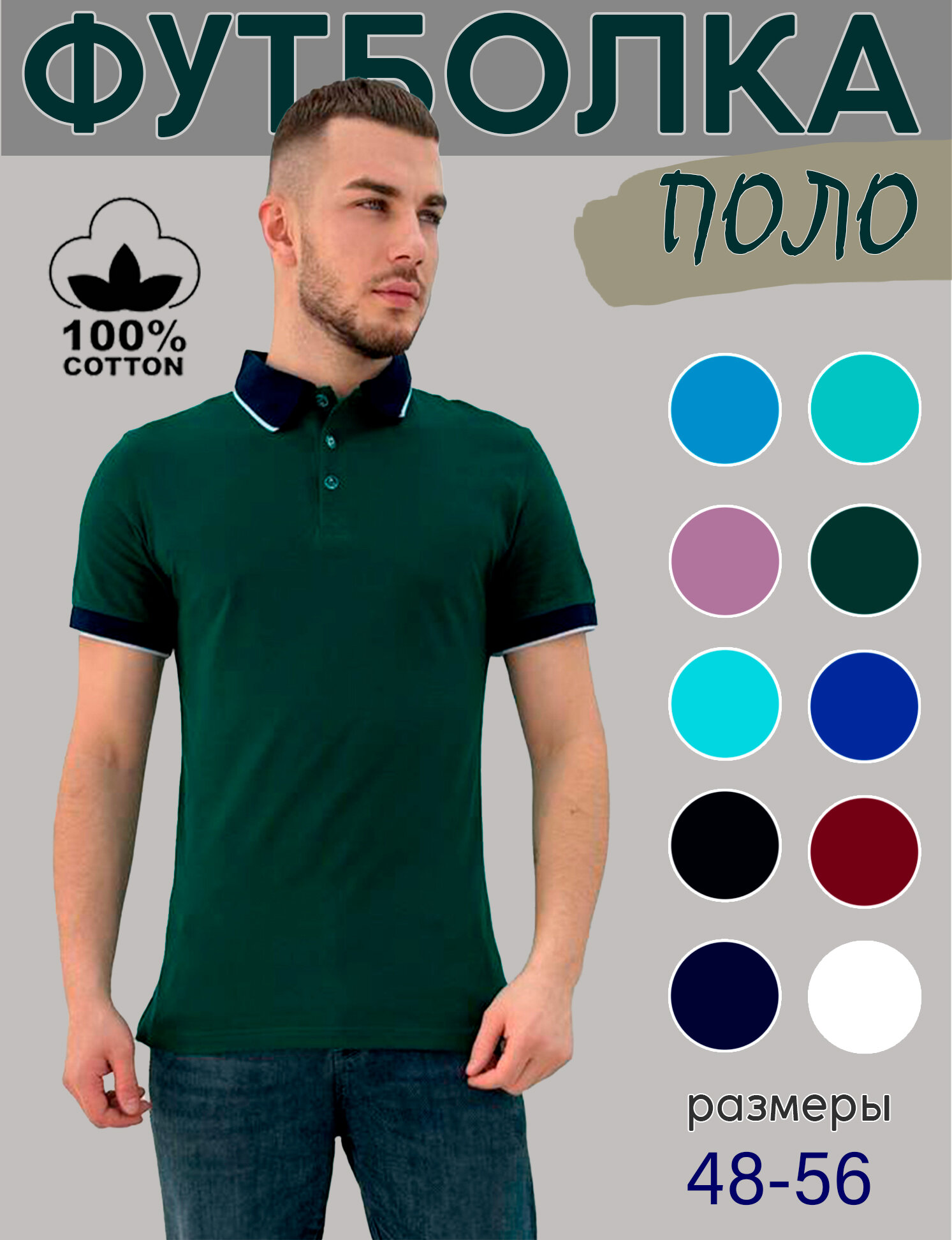 Футболка поло тенниска мужская с коротким рукавом, зеленая, размер XXXL