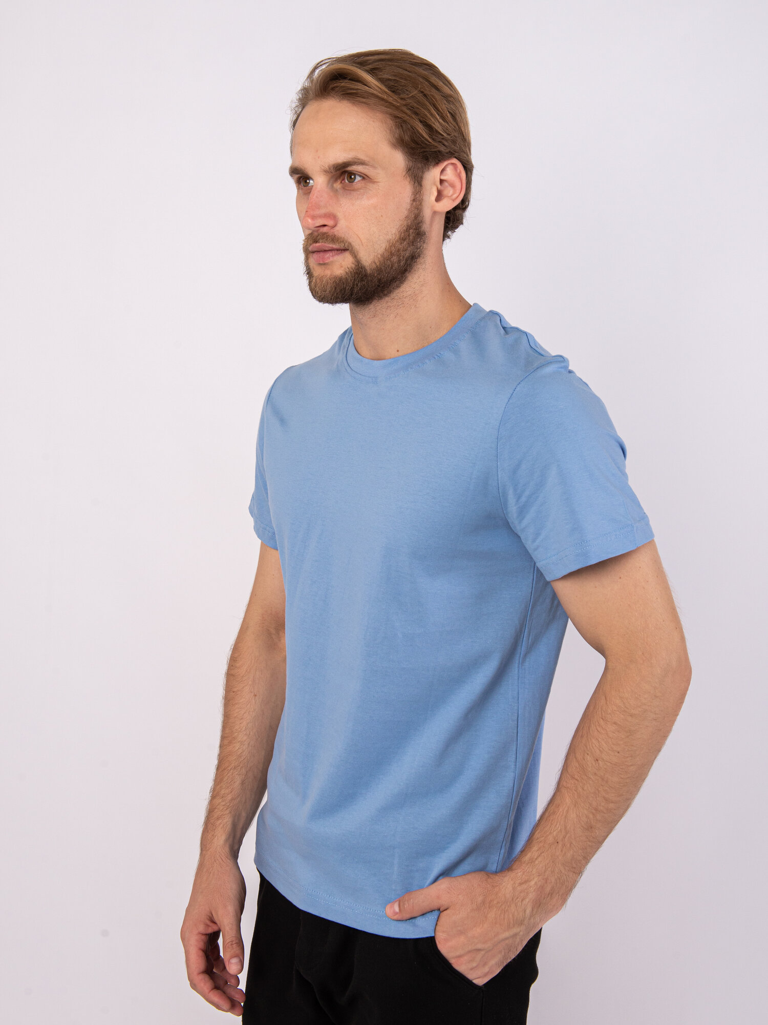 Футболка мужская однотонная светло-голубая без принта, размер 48