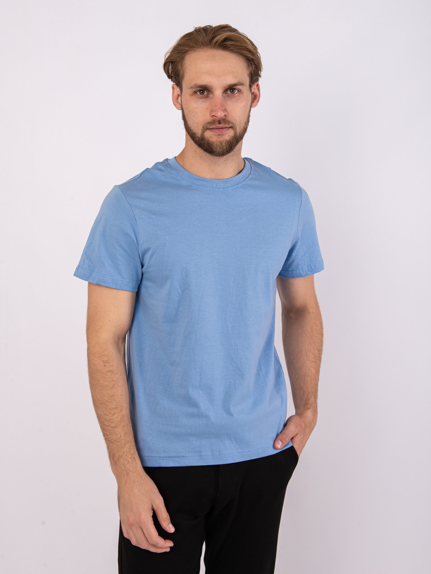 Футболка мужская однотонная светло-голубая без принта, размер 50