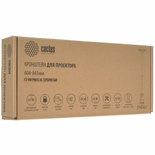 Кронштейн для проектора Cactus CS-VM-PR01L-AL сереб потолочный поворот и наклон мин 60.4 макс 84.3см (CS-VM-PR01L-AL)