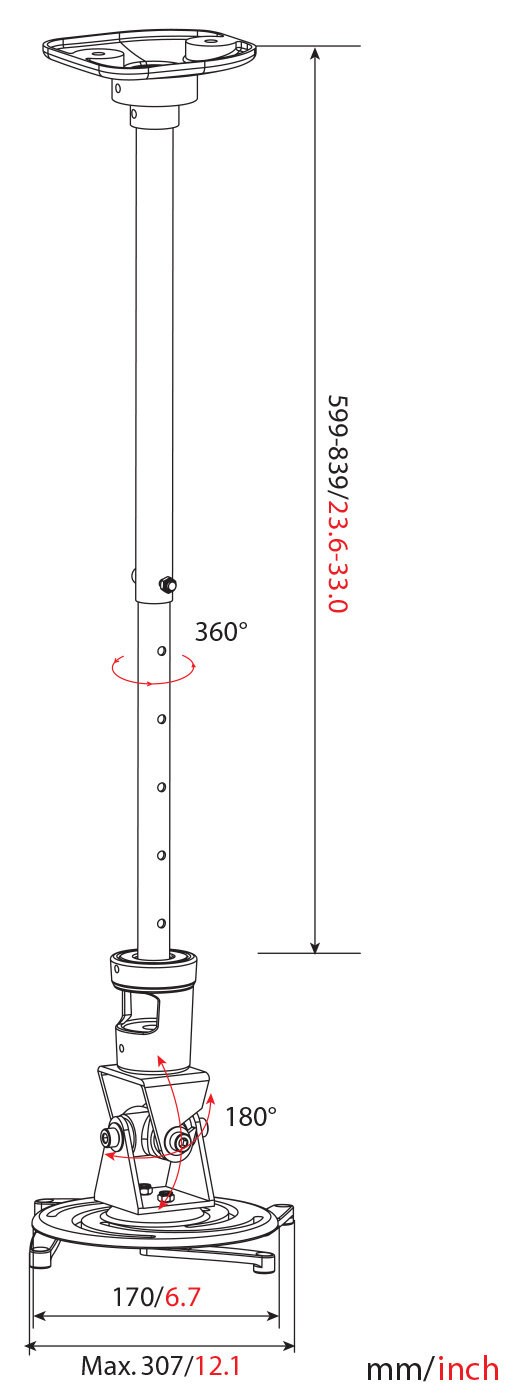 Cactus CS-VM-PR01L-BK черный Кронштейн для проектора макс.10кг настенный и потолочный поворот