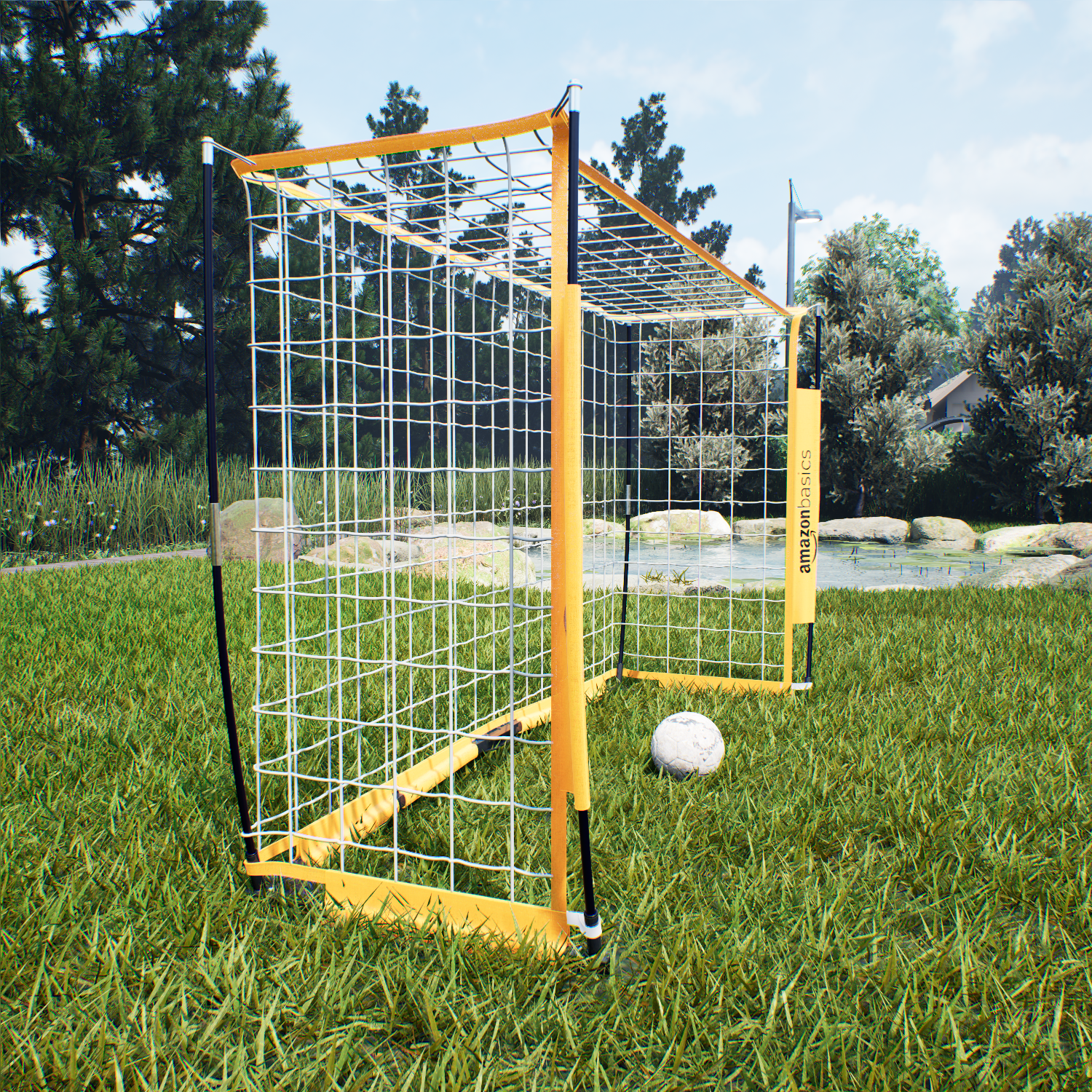 Футбольные ворота для дома и дачи Amazon Basics (360 х 180 см), складные, желтые