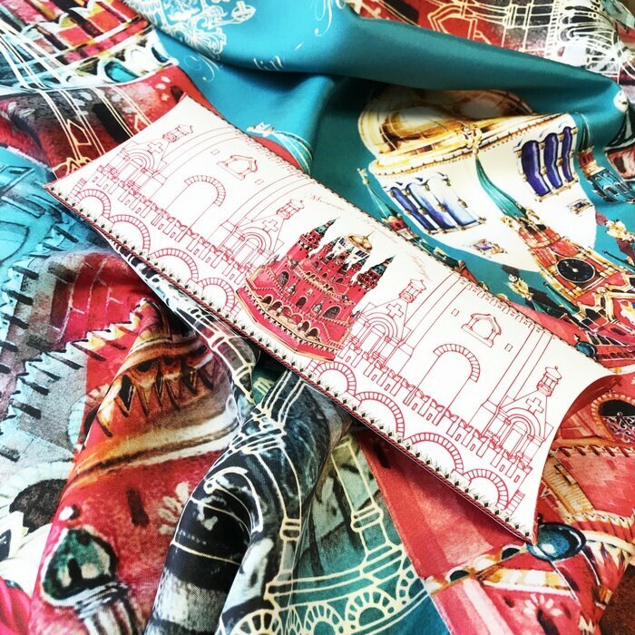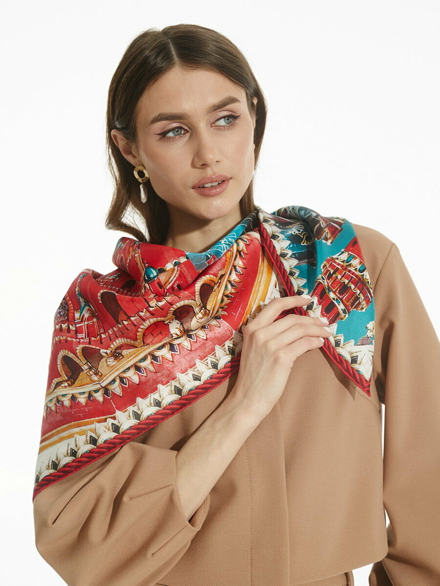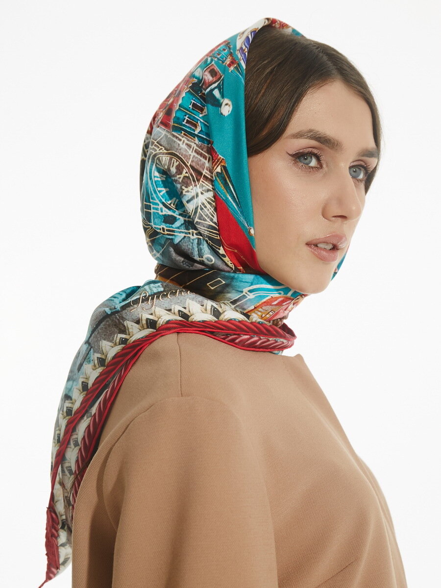 Платок Русские в моде Москва - Кремль - Фаберже 90х90 100%Шёлк интересное: