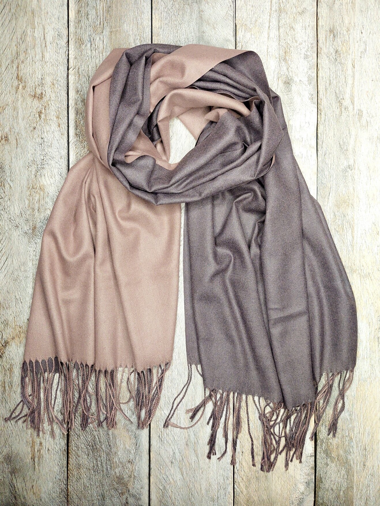 Палантин кашемир двусторонний теплый 180 Х 70 см розовая серый
