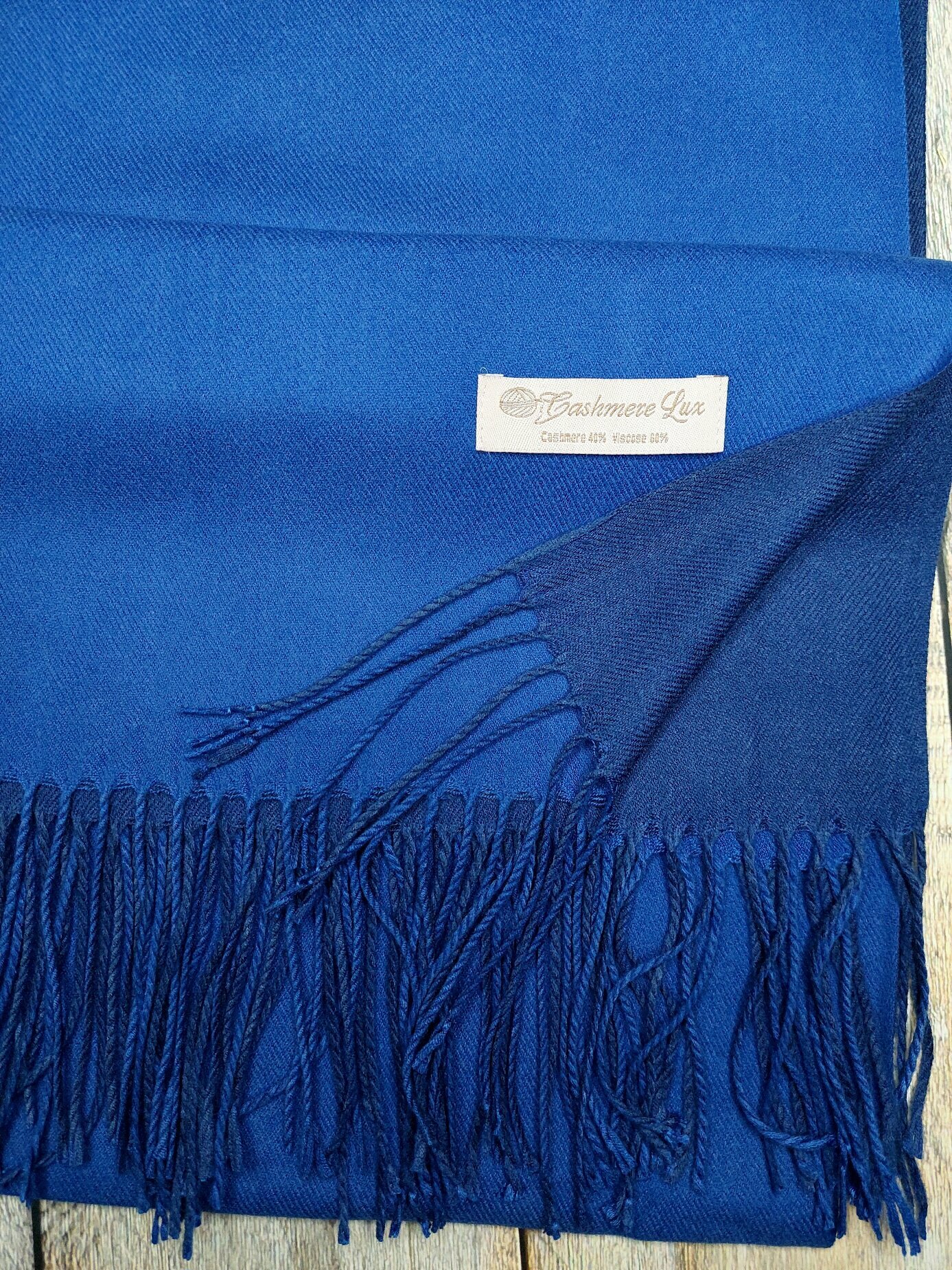 Купить Палантин кашемир двусторонний теплый 180 Х 70 см синий
