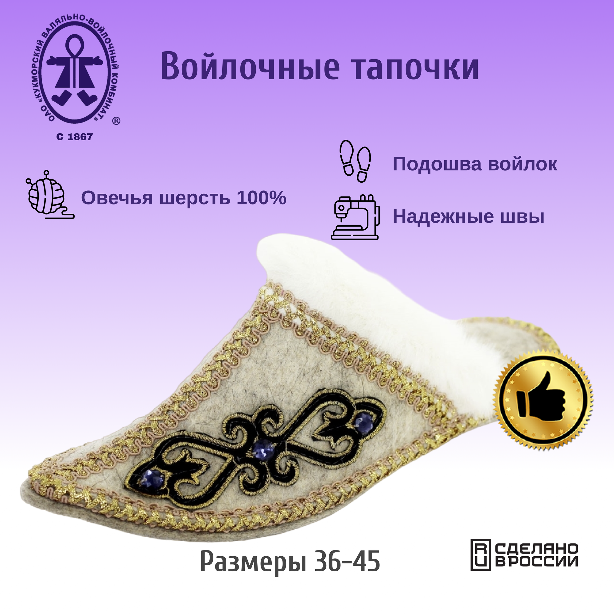 Купить Тапочки мужские и женские Кукморские войлочные Т-24 "Султан" бежевые на войлочной подошве р.42