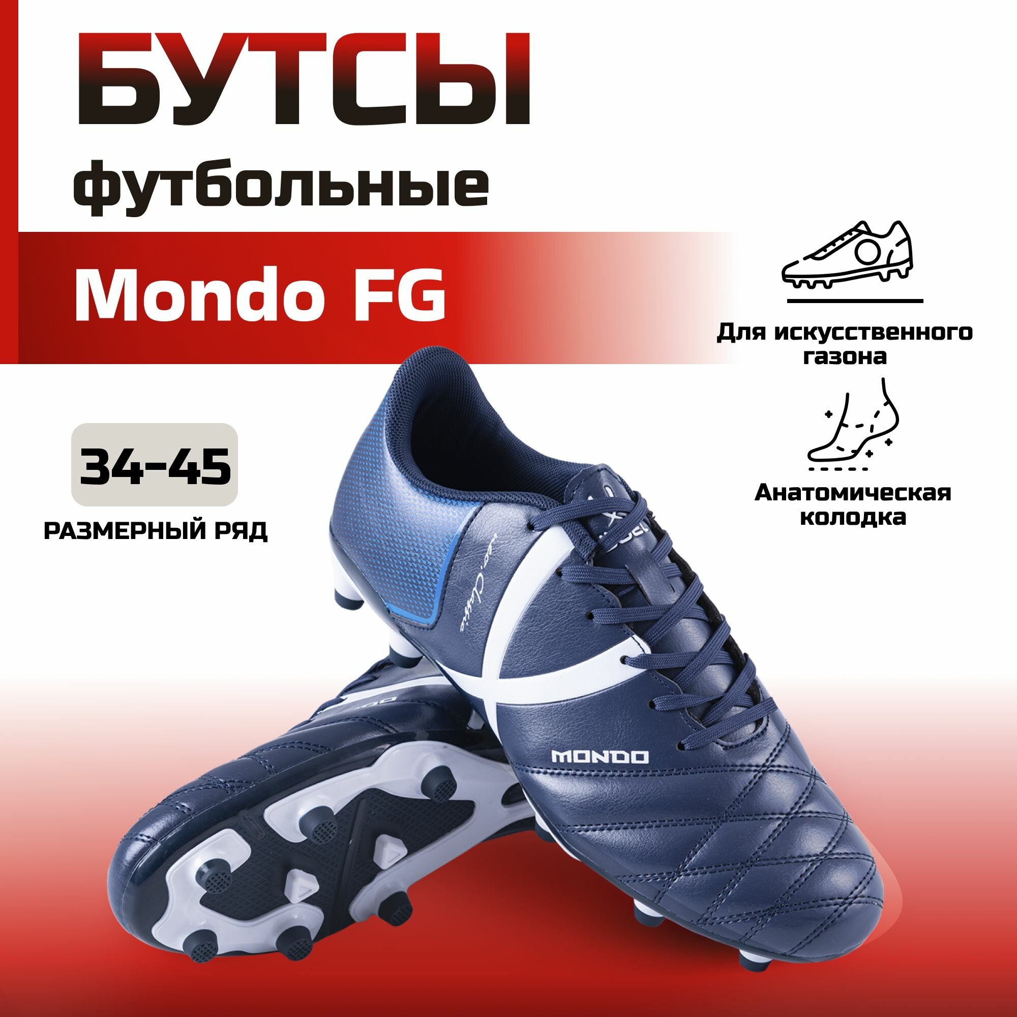Бутсы футбольные Jogel Mondo цвет темно-синий, размер 42, бутсы с шипами для футбола