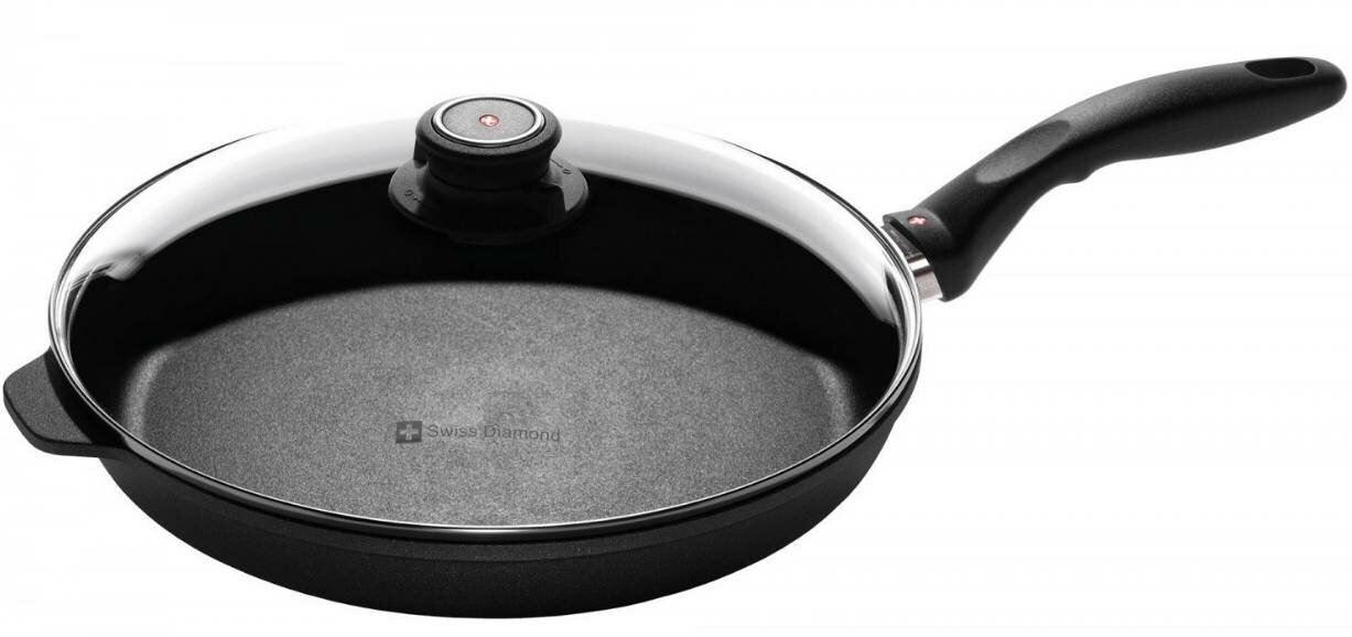 Алюминиевая сковорода c алмазным покрытием и стеклянной крышкой 28 см, Черная Swiss Diamond XD Classic+ Induction
