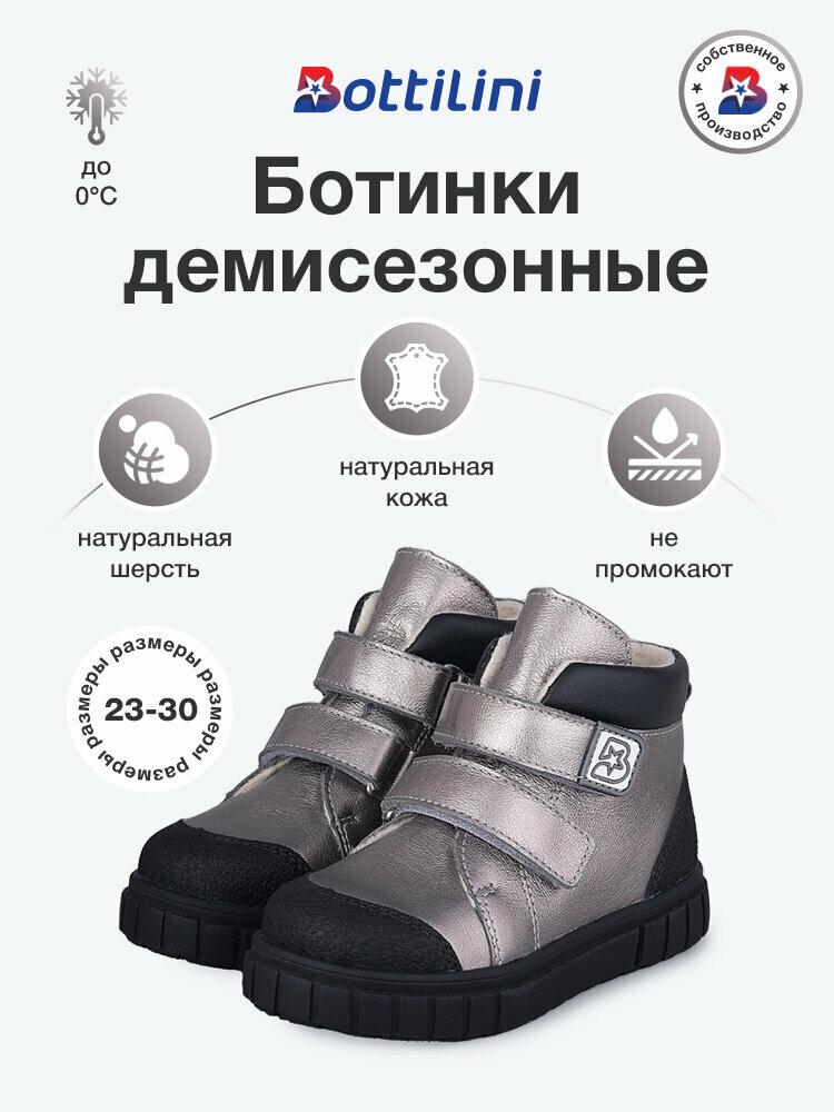 Купить Ботинки демисезонные BOTTILINI, размер 24 / 15 см, серебряный, черный