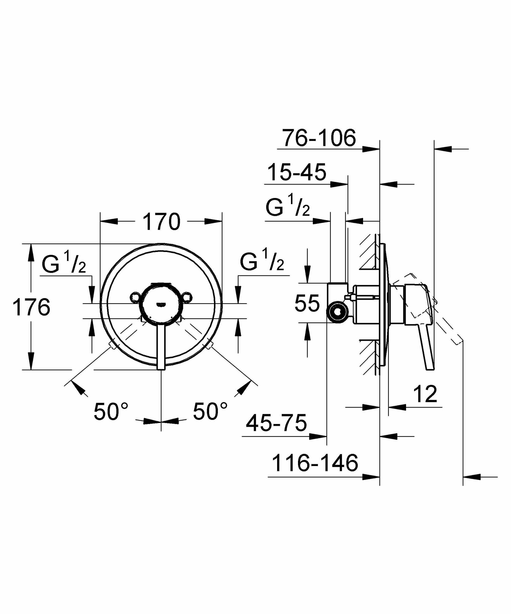 Смеситель для душа GROHE Concetto скрытого монтажа, в комплекте с монтажной частью, хром (32213001)