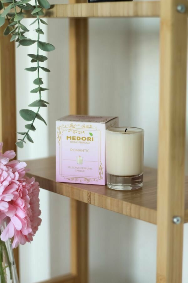 Купить Свеча ароматическая для дома Medori ROMANTIC парфюмированная, декоративная с запахом в стеклянном стакане, из соевого воска для украшения интерьера
