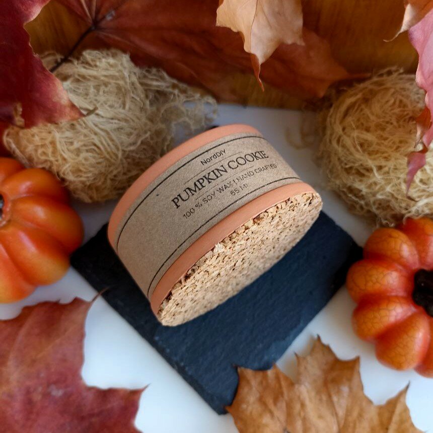 Купить Свеча ароматическая с деревянным фитилём "Тыквенное печенье" из соевого воска, 65 мл
