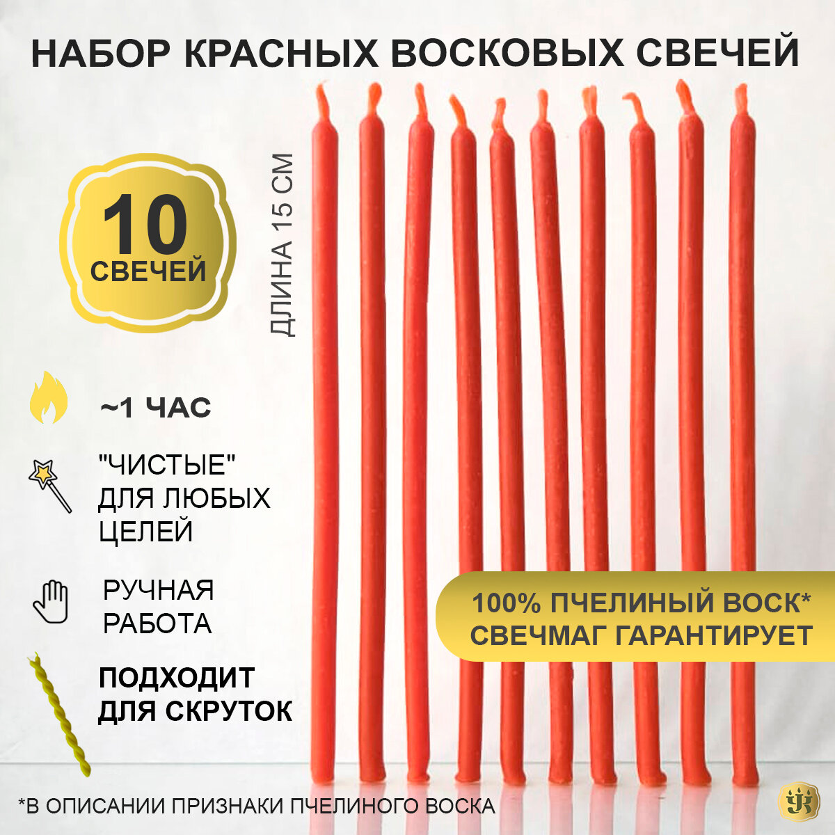 Купить Свечи красные из 100% пчелиного воска, 15 см магические для ритуалов и обрядов, тонкие как церковные для скруток, Свечмаг