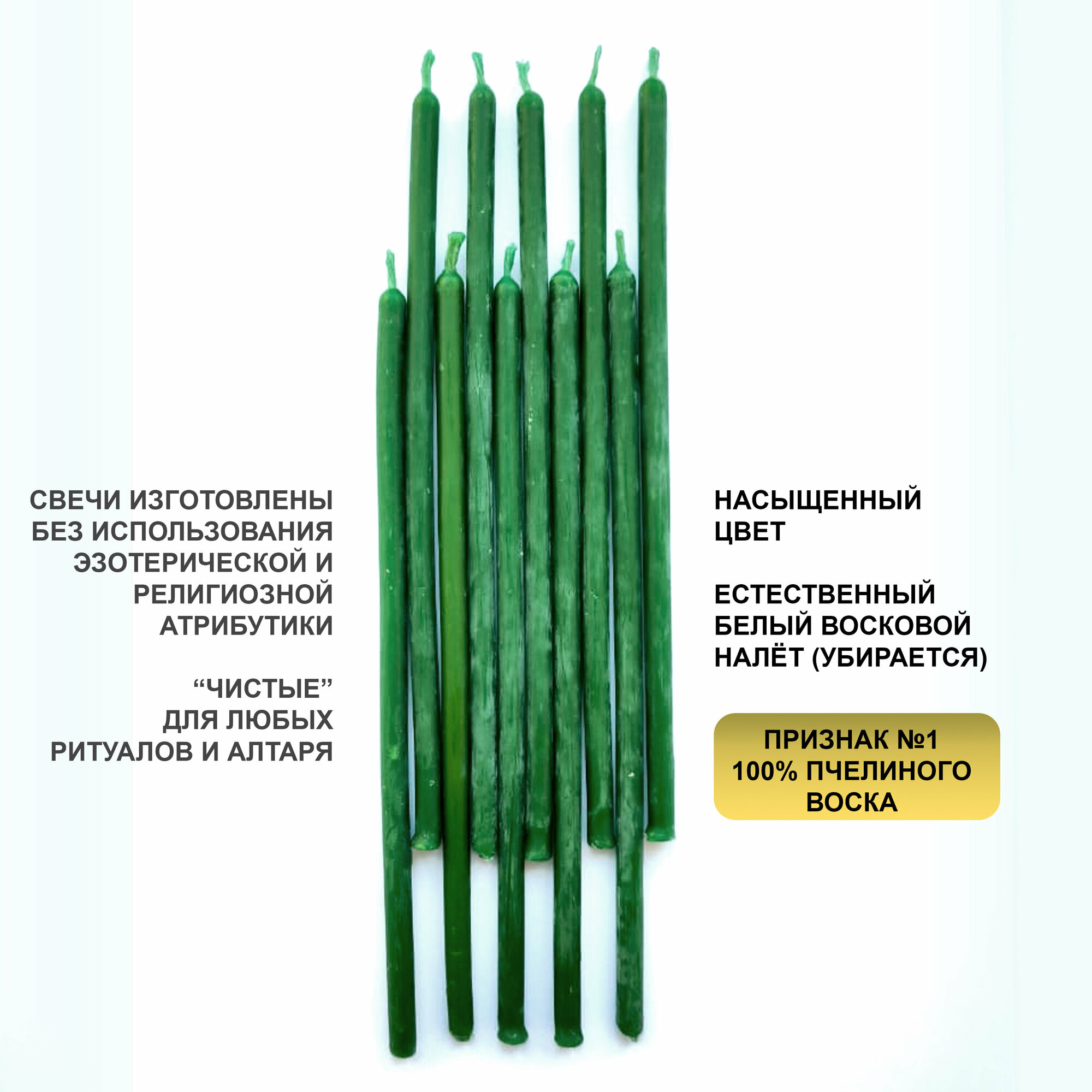 Купить Свечи зеленые из 100% пчелиного воска 10шт, 15 см магические для ритуалов и обрядов, тонкие как церковные для скруток, Свечмаг
