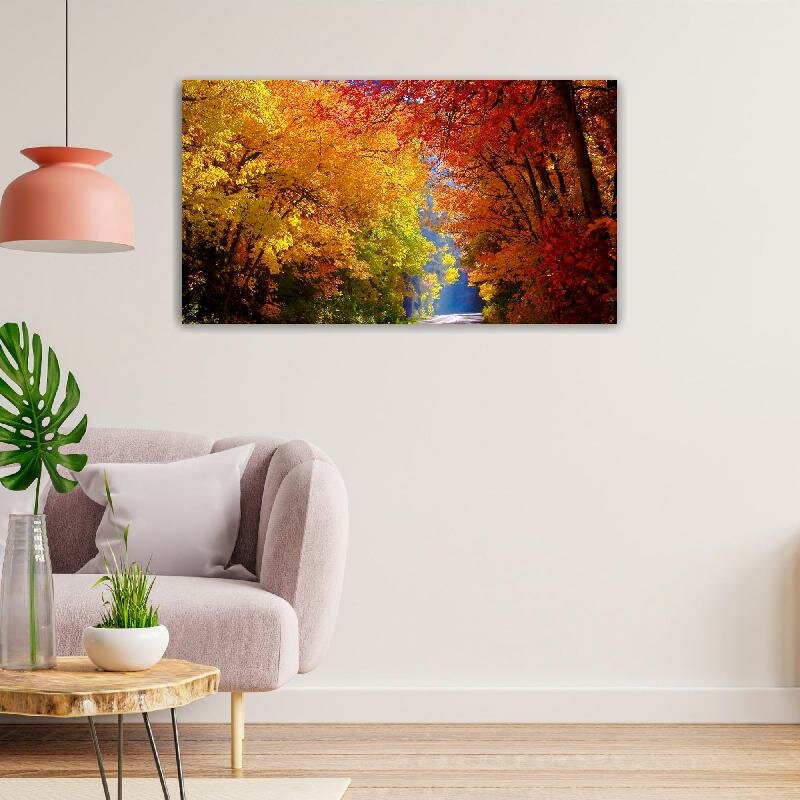 Картина на холсте 60x110 Альянс Лес "Лес желтые дорога красочно" на подрамнике / интерьер/ декор интересное: