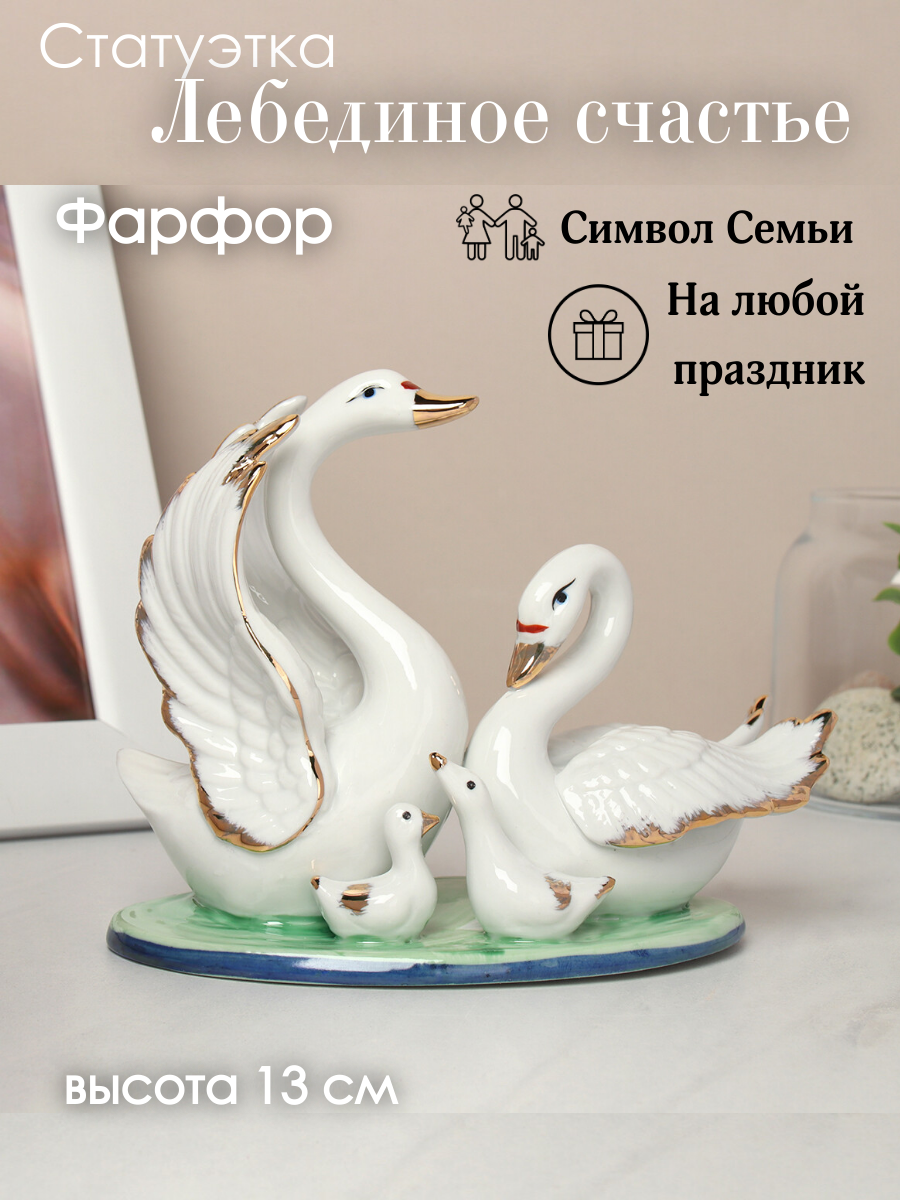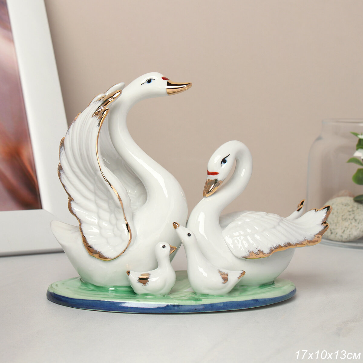 Купить Статуэтка фарфоровая Семья лебедей 13 см / Фигурка интерьерная