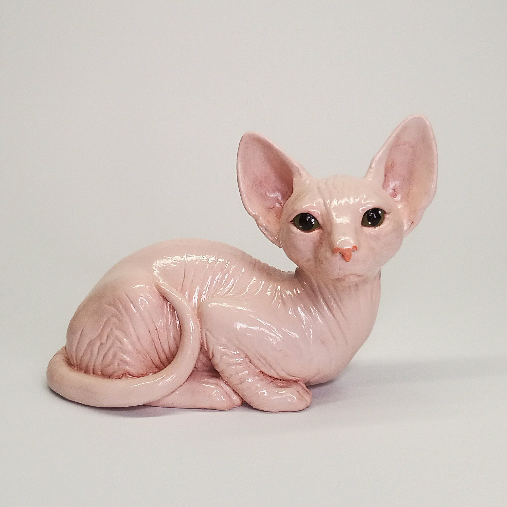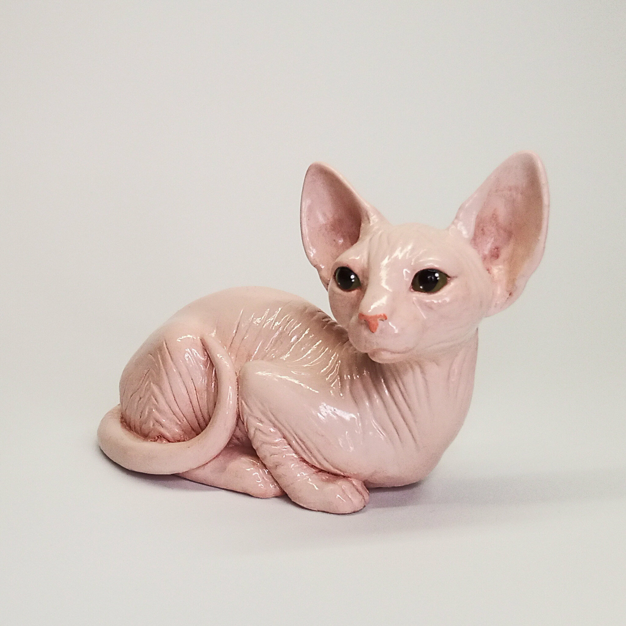 Фигурка кошки сфинкс "Мечтатель", розовый поинт, ручная работа.