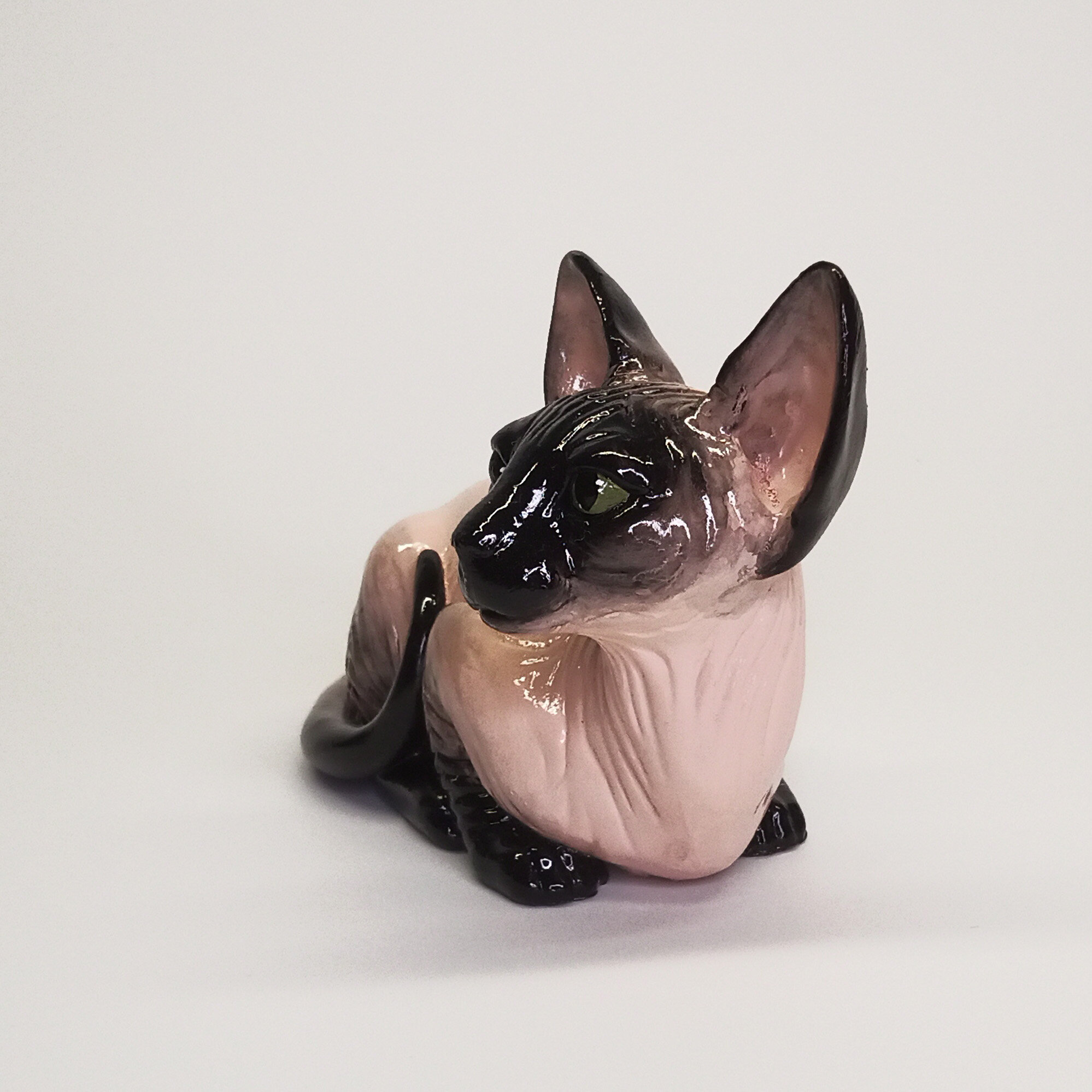 Фигурка кошки сфинкс "Мечтатель", серый поинт, ручная работа.