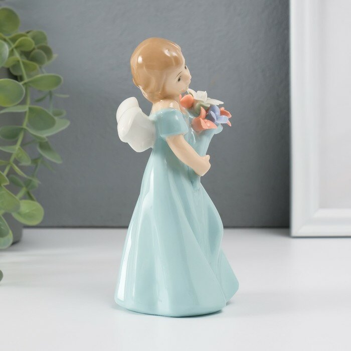 Сувенир "Девочка ангел с букетом в зелёном платье" 14х6,5х6 см интересное: