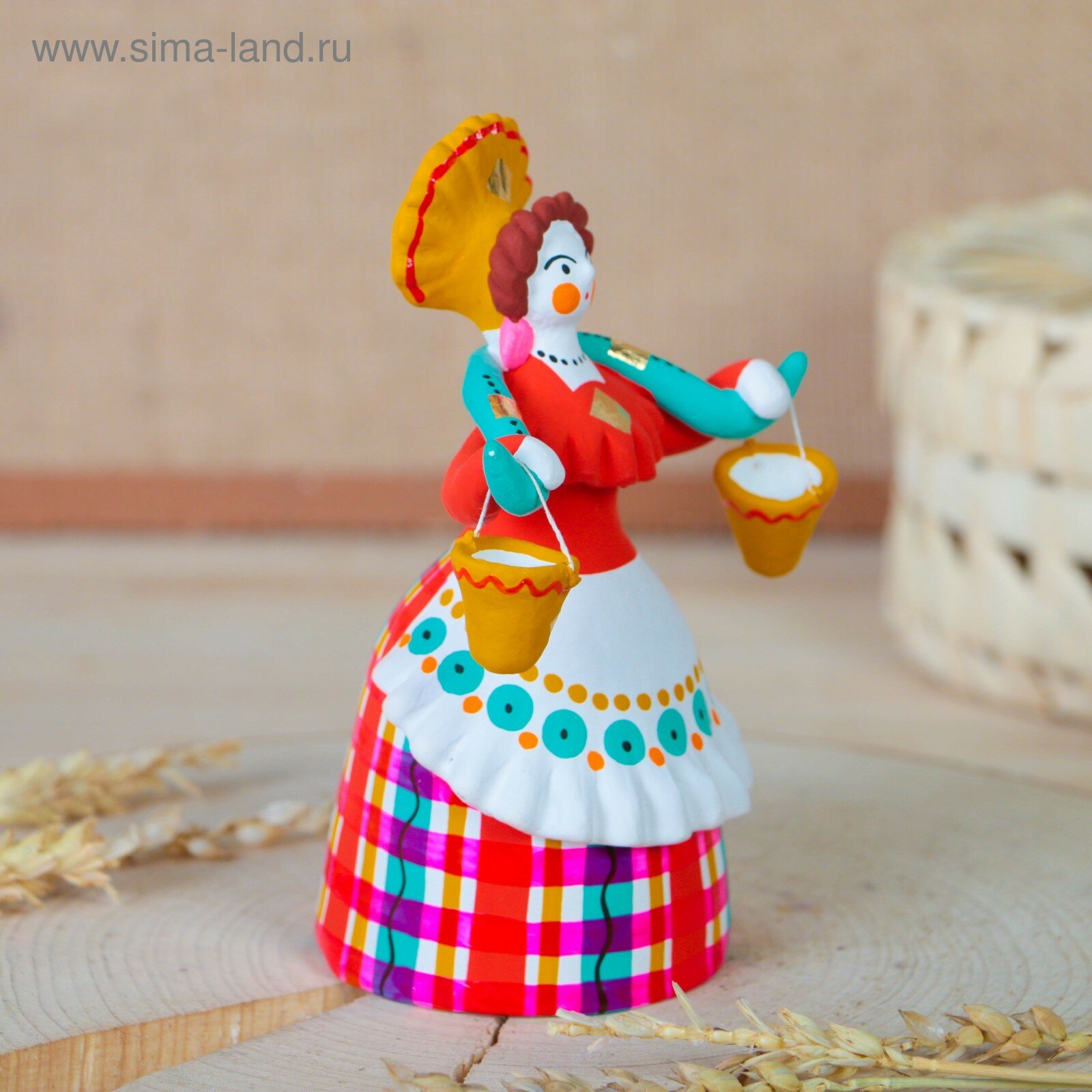Купить Дымковская игрушка "Барыня - водоноска", 14 см, микс