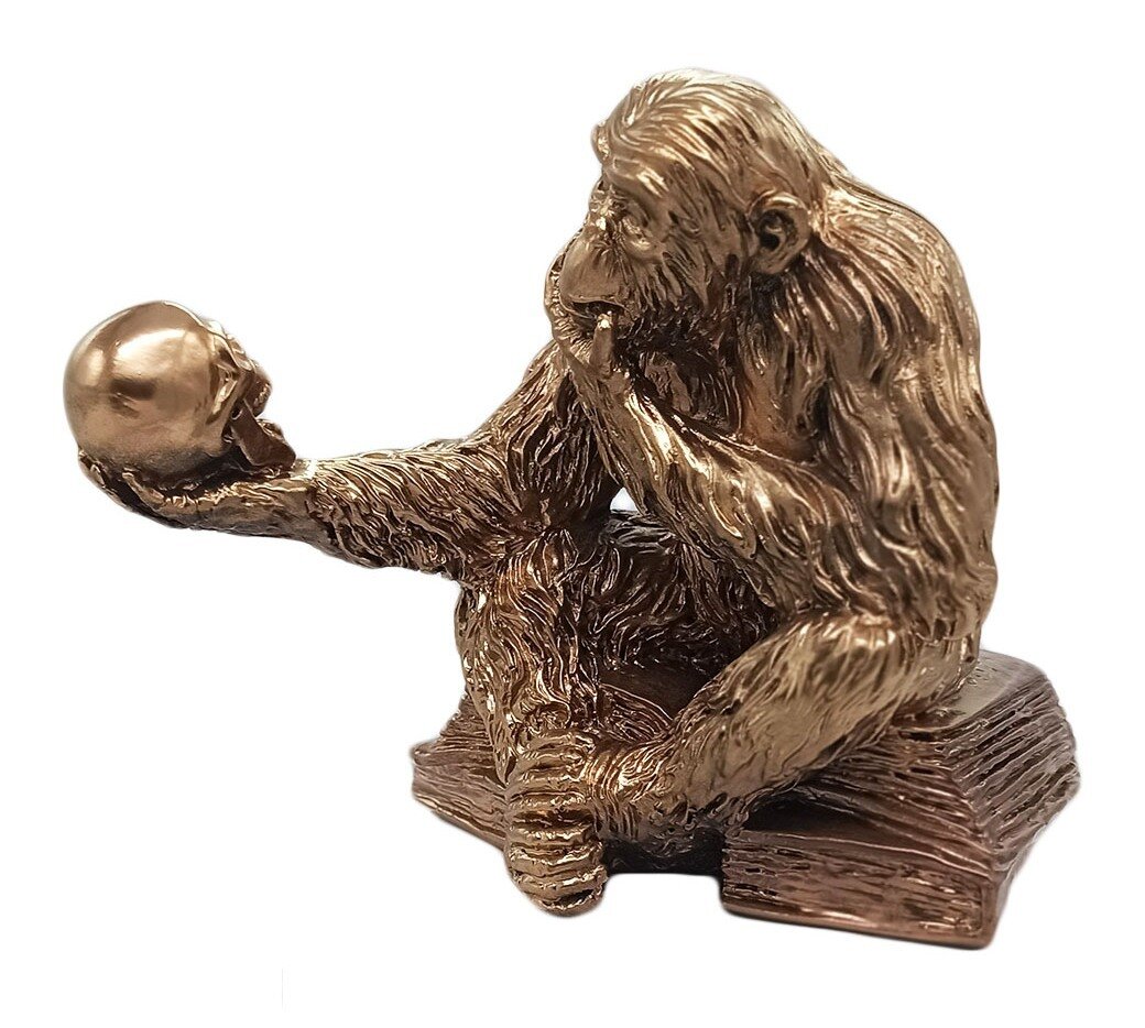 Купить Статуэтка Обезьяна с черепом гипс 15 см цвет бронза