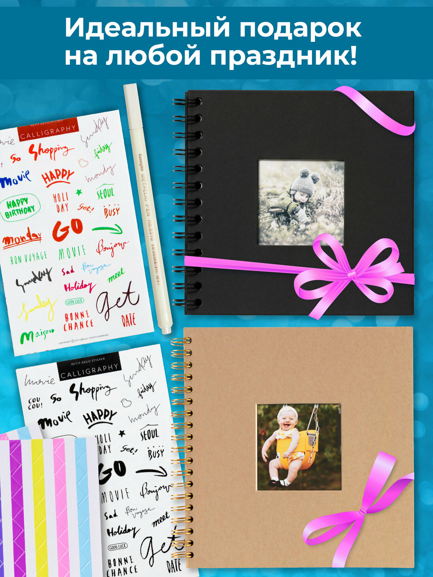 Фотоальбом семейный для фотографий маленький, Parchment, Альбом для фото крафтовый, черный 2 шт. интересное: