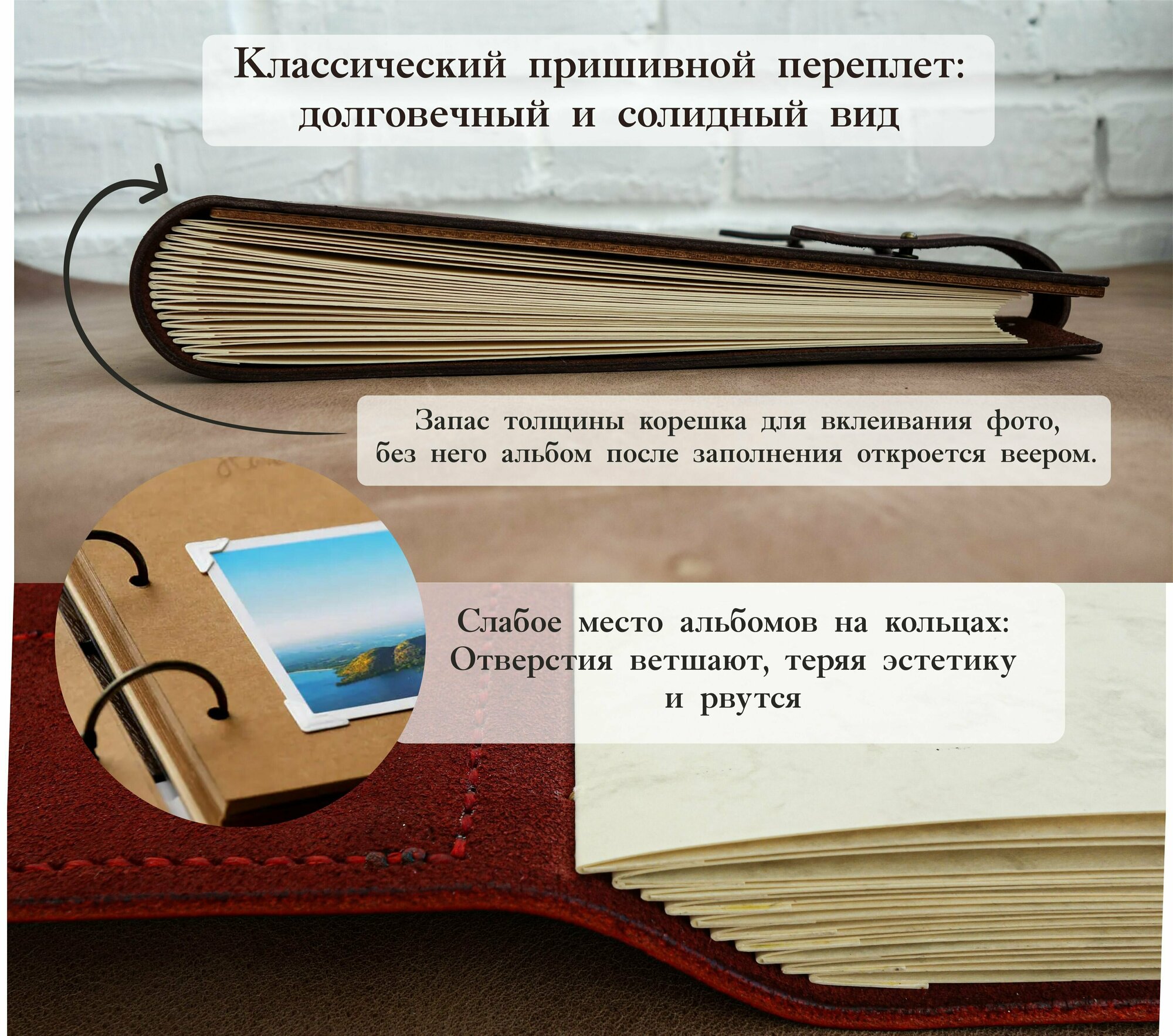 Фотоальбом из натуральной кожи "Семейный фотоальбом" шоколадный от 120 фото, молочные листы интересное: