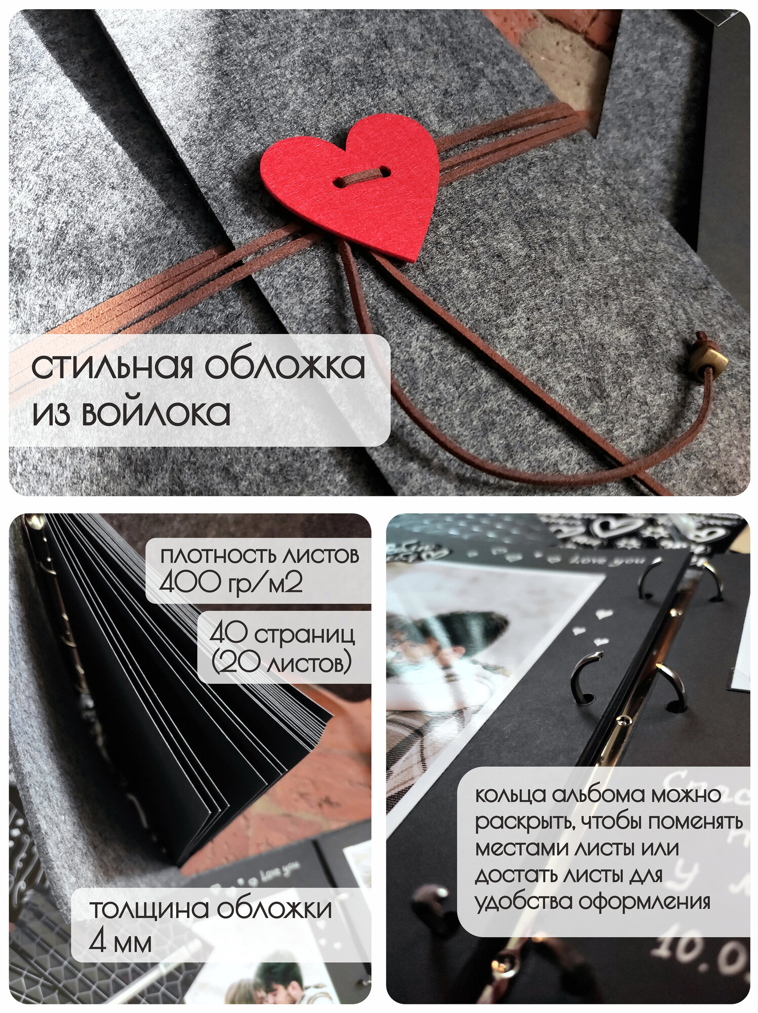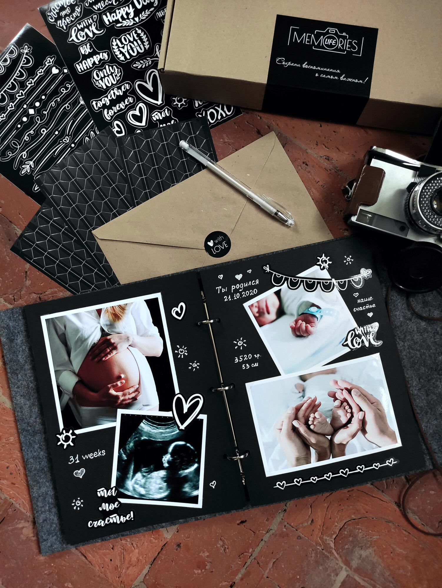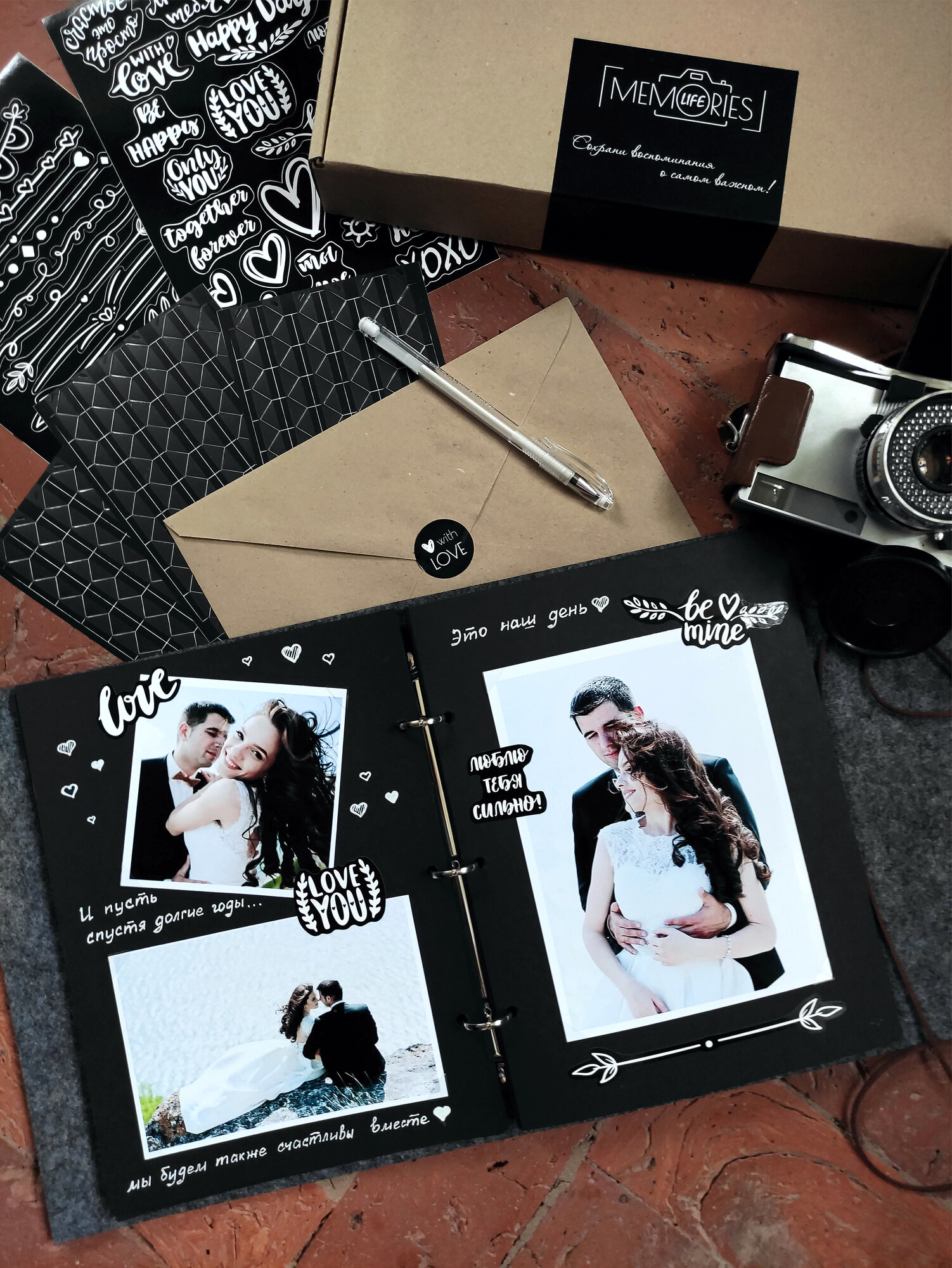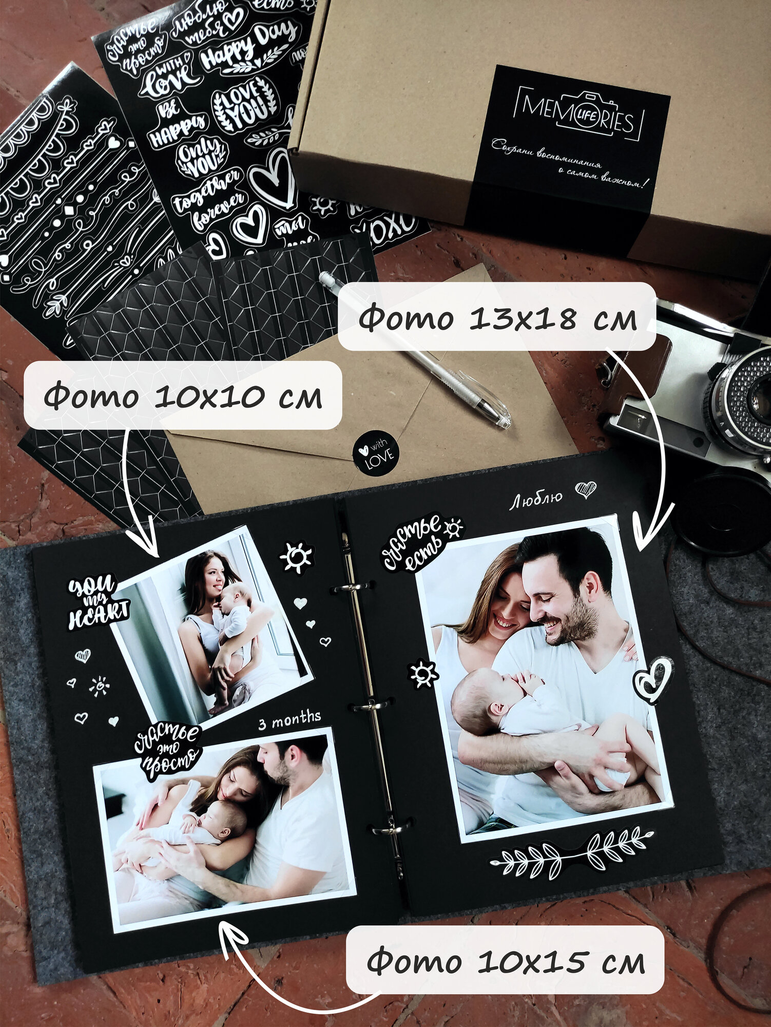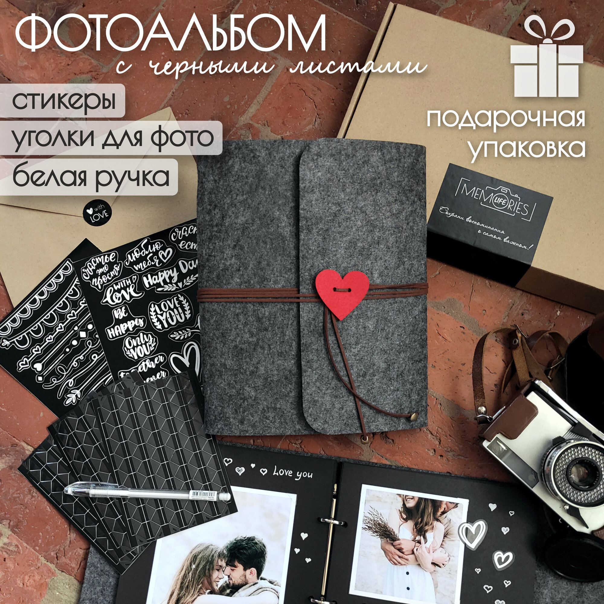 Фотоальбом Memories Life семейный свадебный с наклейками серый интересное:
