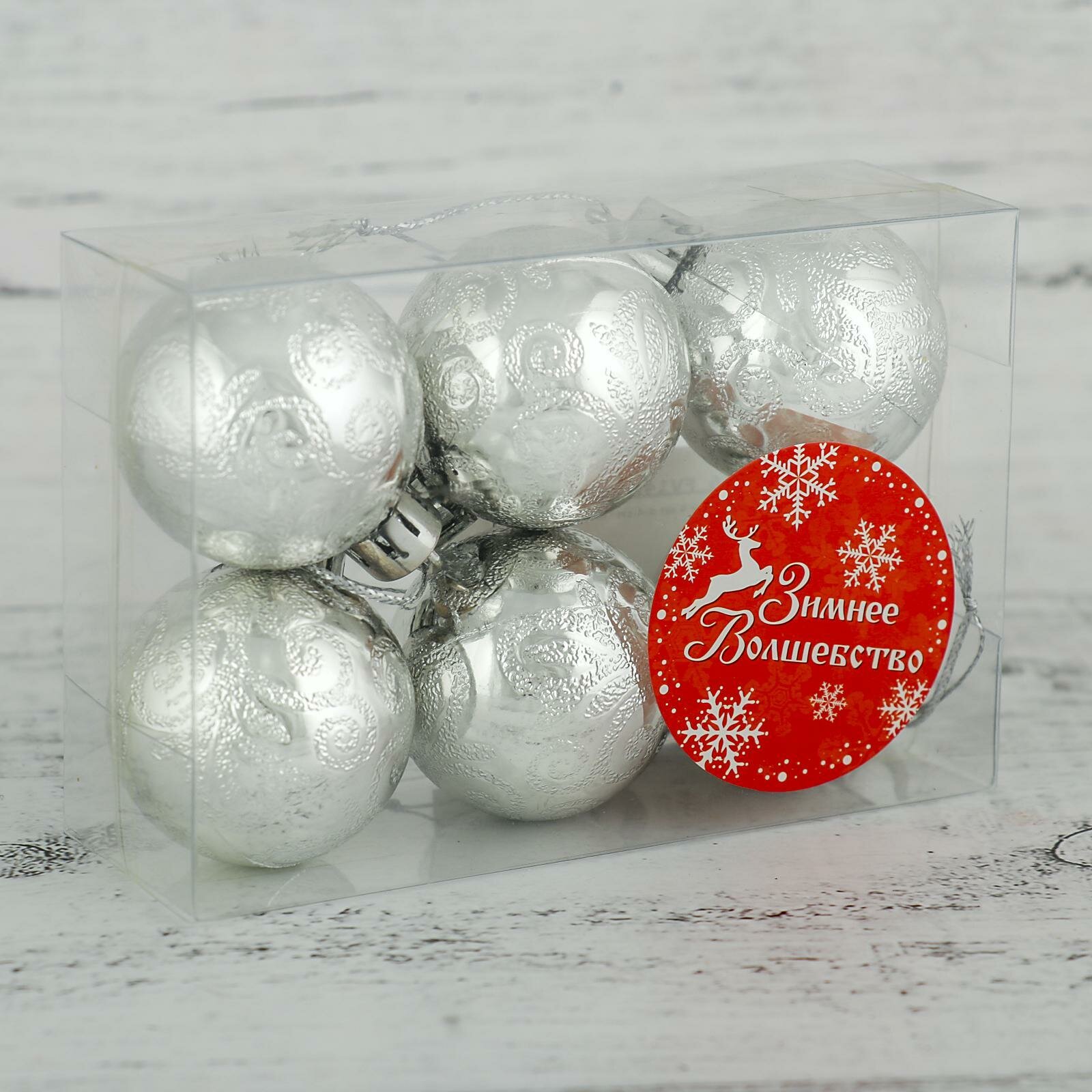 Купить Набор шаров пластик диаметр4 см, 6 шт "Морозная зима" серебро