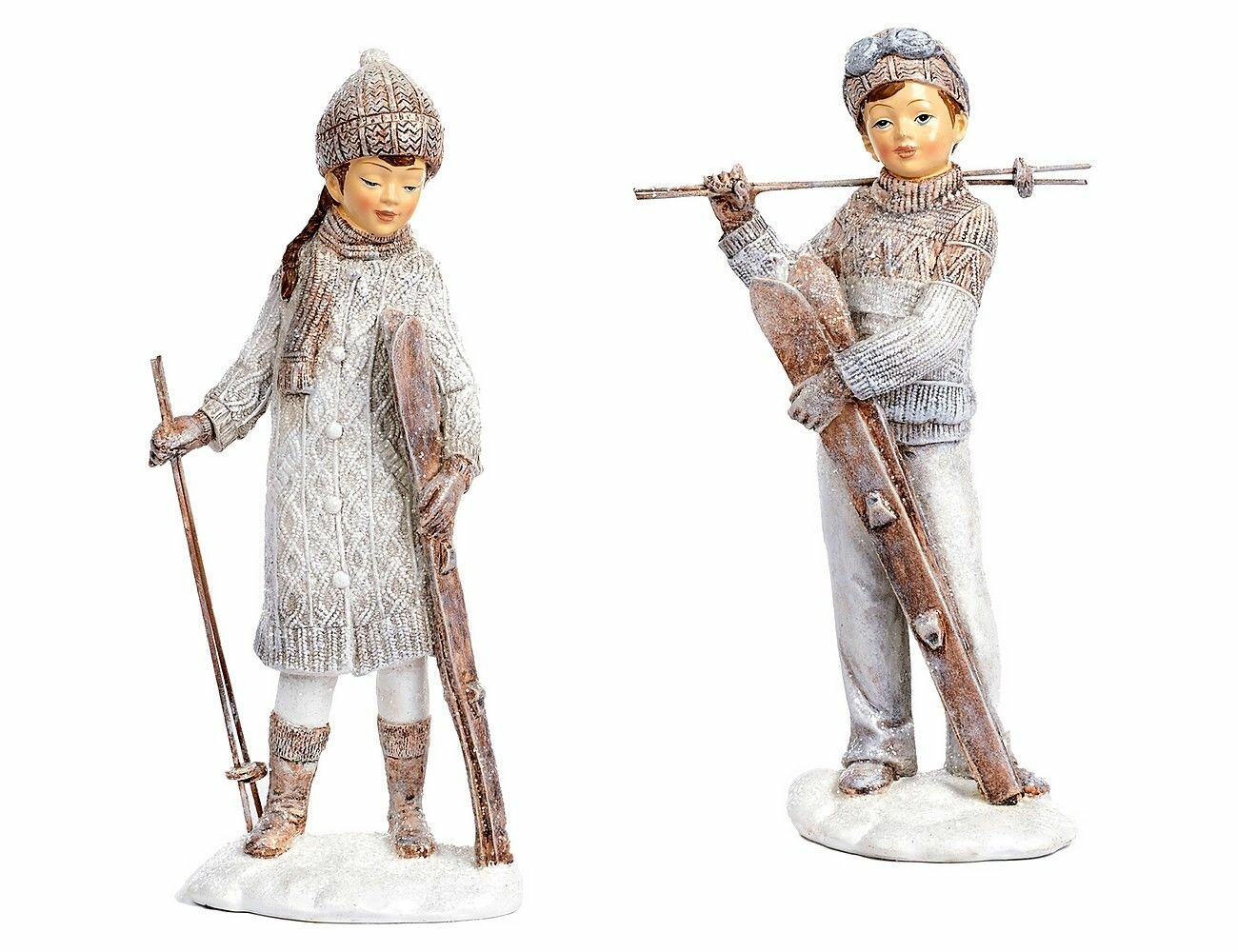 Набор декоративных фигур зимние радости: вместе на лыжную прогулку, полистоун, 23 см, 2 шт., Goodwill MC38076-набор интересное: