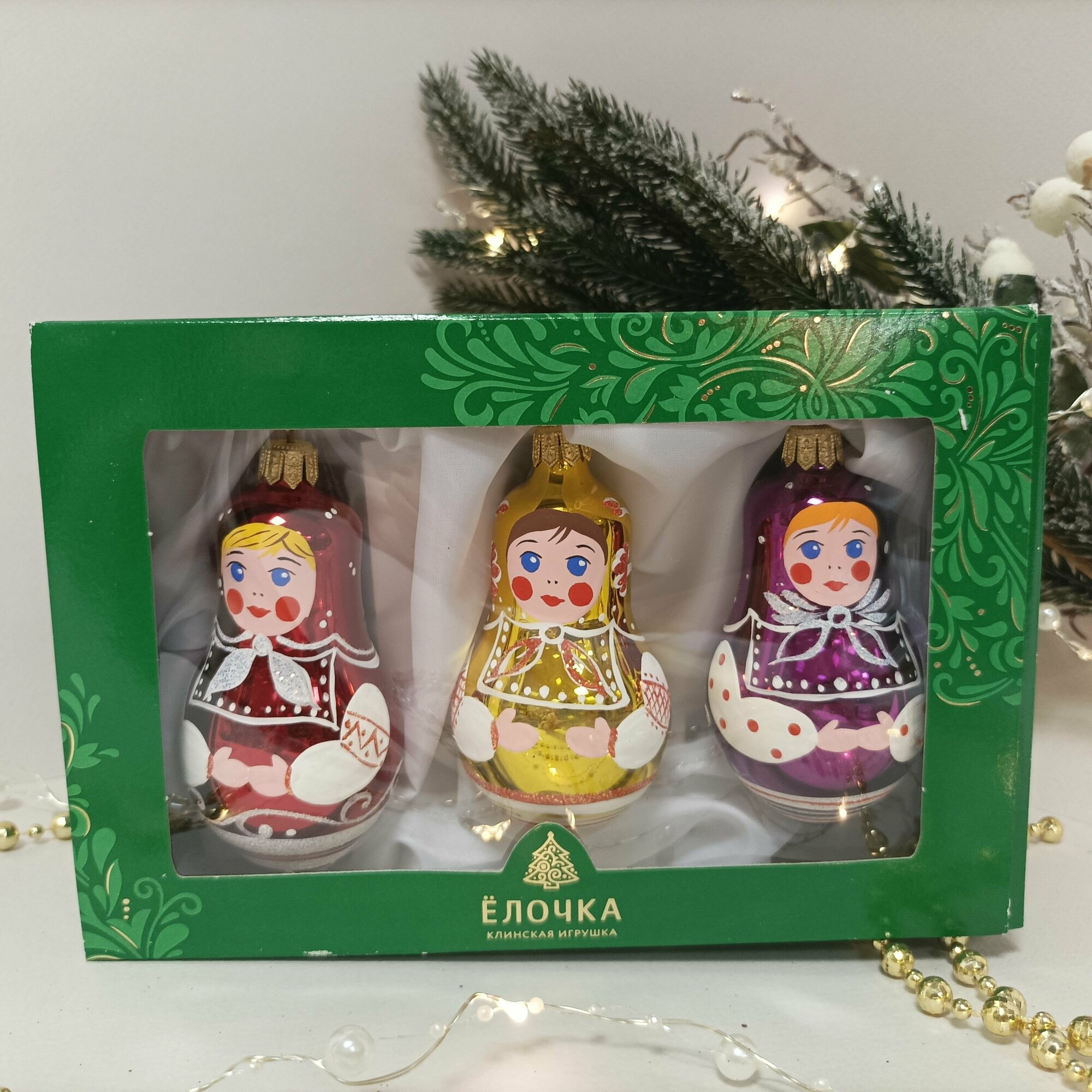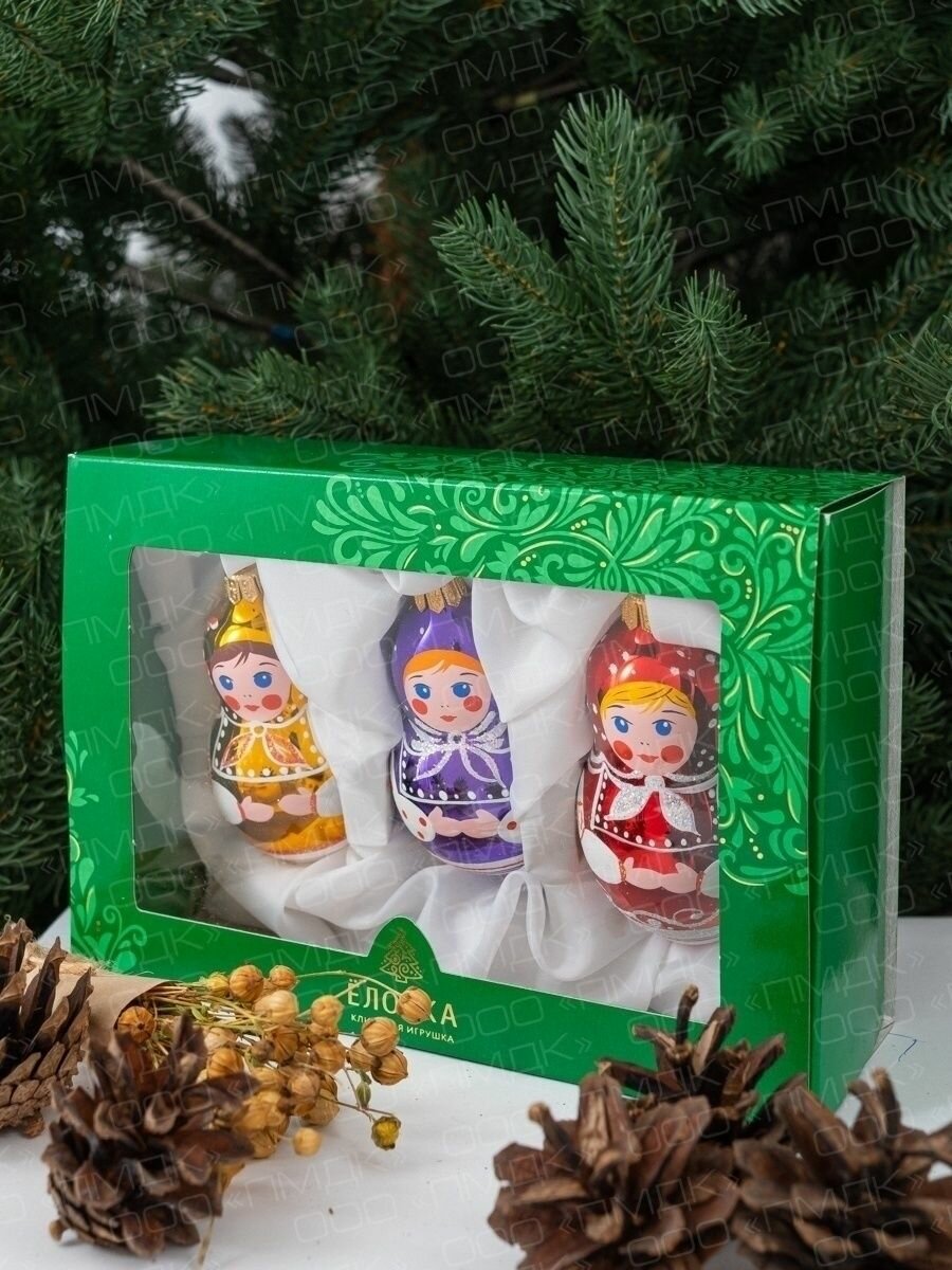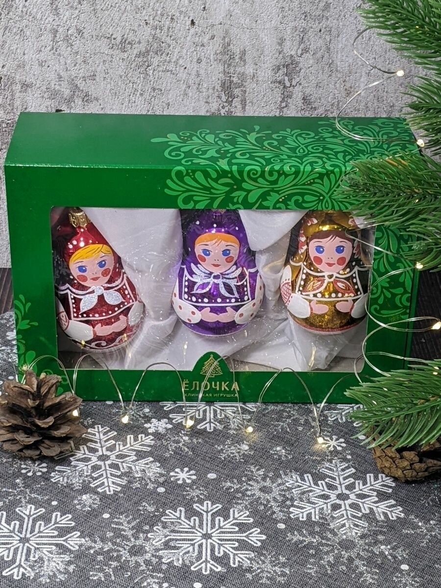 Набор елочных украшений Елочка из стекла, "Ярмарка", 3 фигурки, 8 см, подарочная коробка (С1183) интересное: