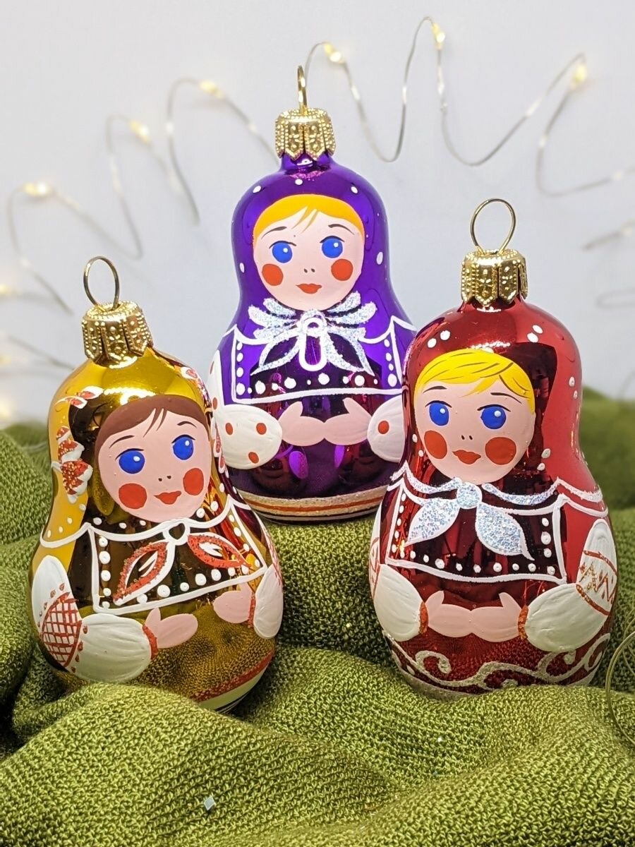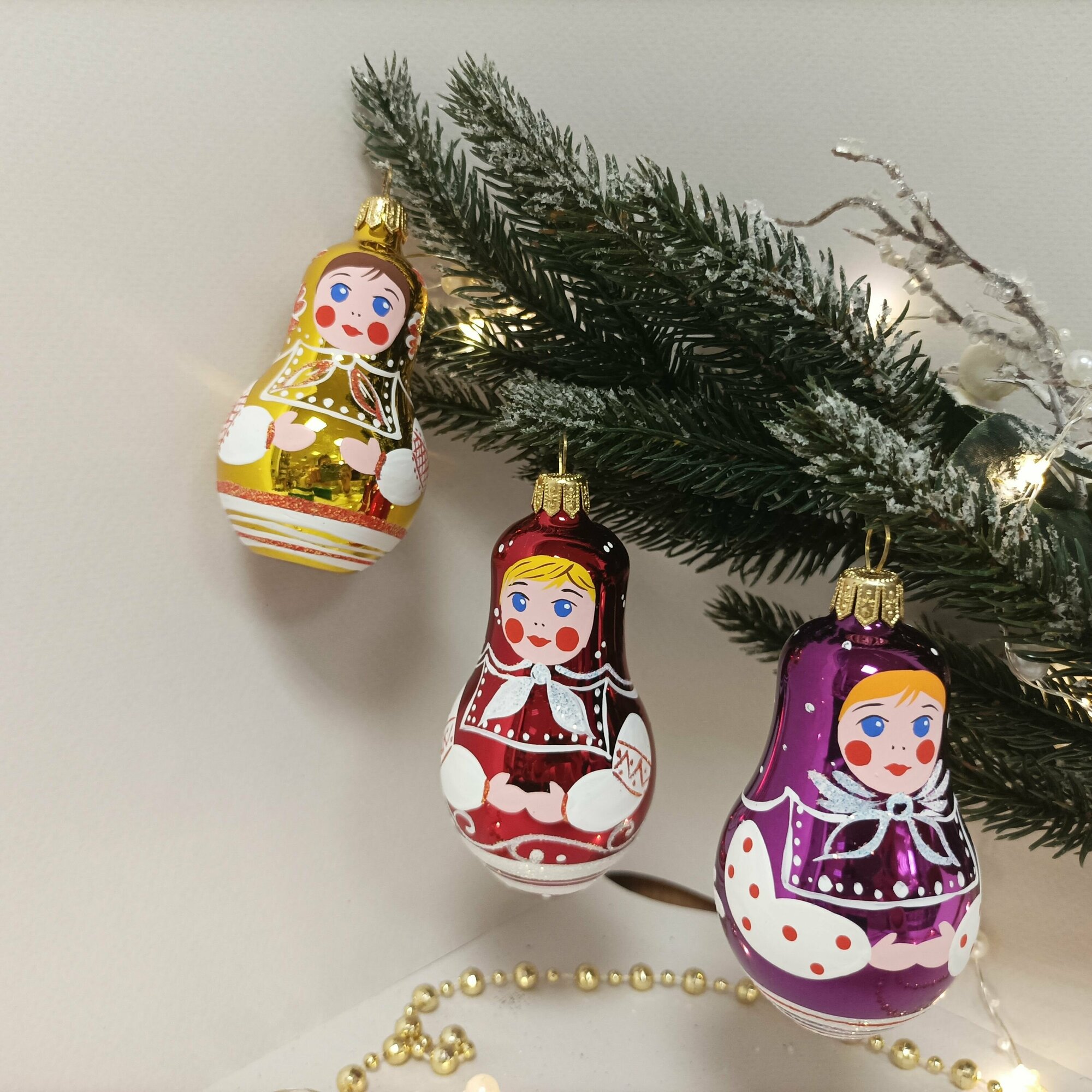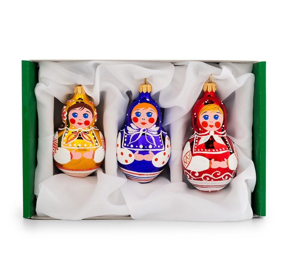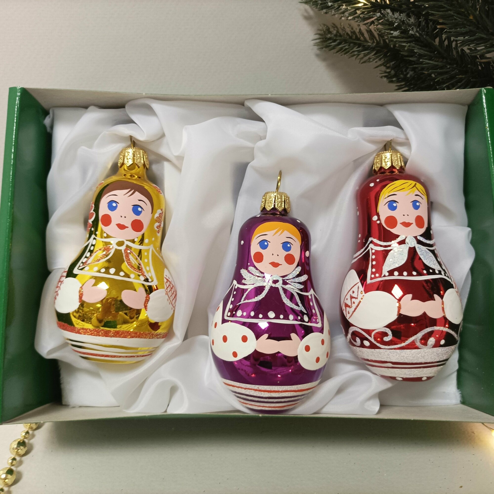 Набор елочных украшений Елочка из стекла, "Ярмарка", 3 фигурки, 8 см, подарочная коробка (С1183) интересное: