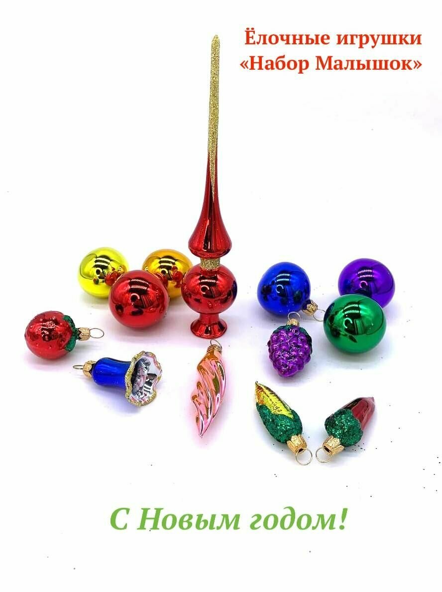 Елочка Набор елочных игрушек Малышок, 13 шт, стекло, подвеска С 821 интересное: