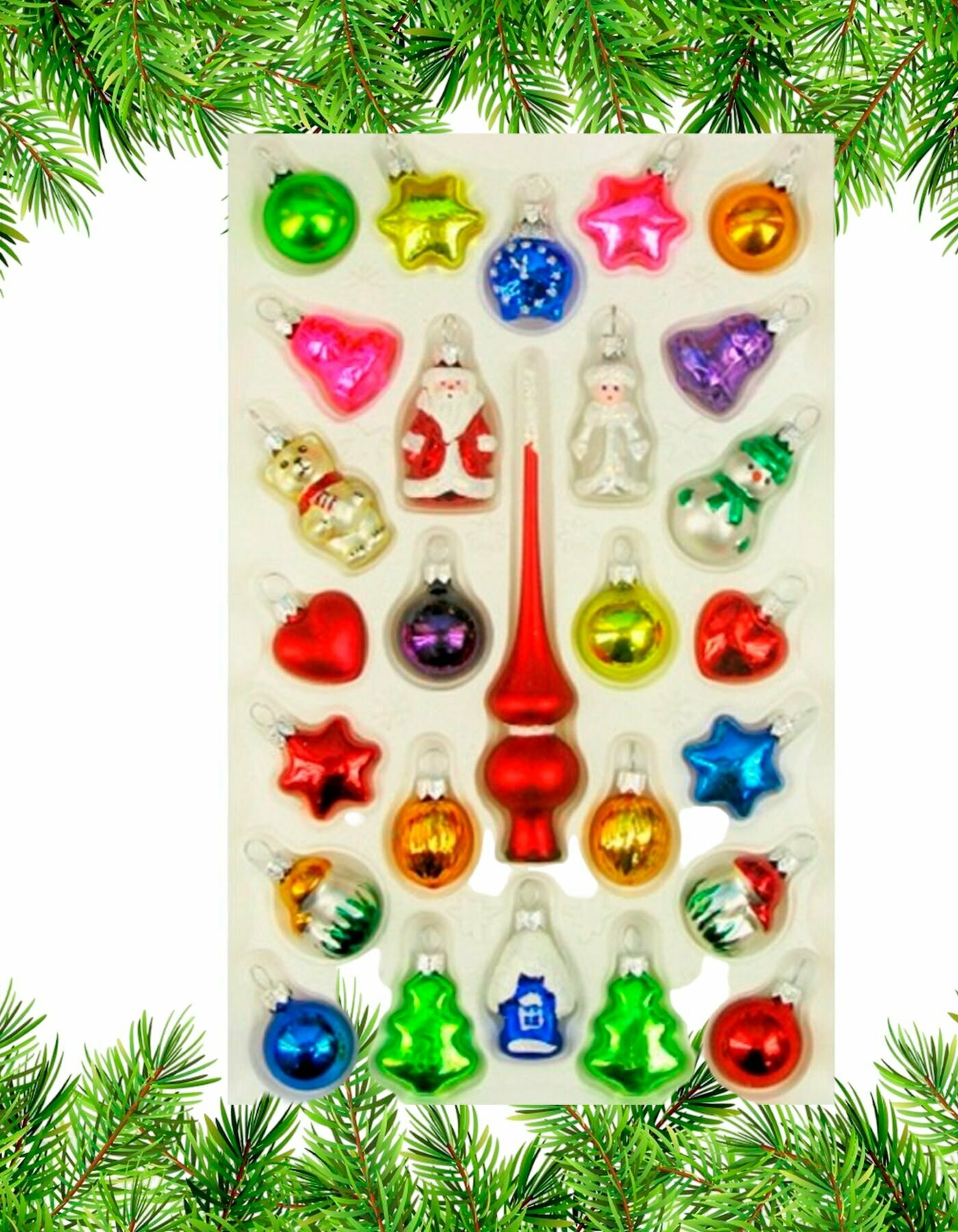 Набор елочных игрушек миниатюрных 27шт. 4см стекло клинская игрушка