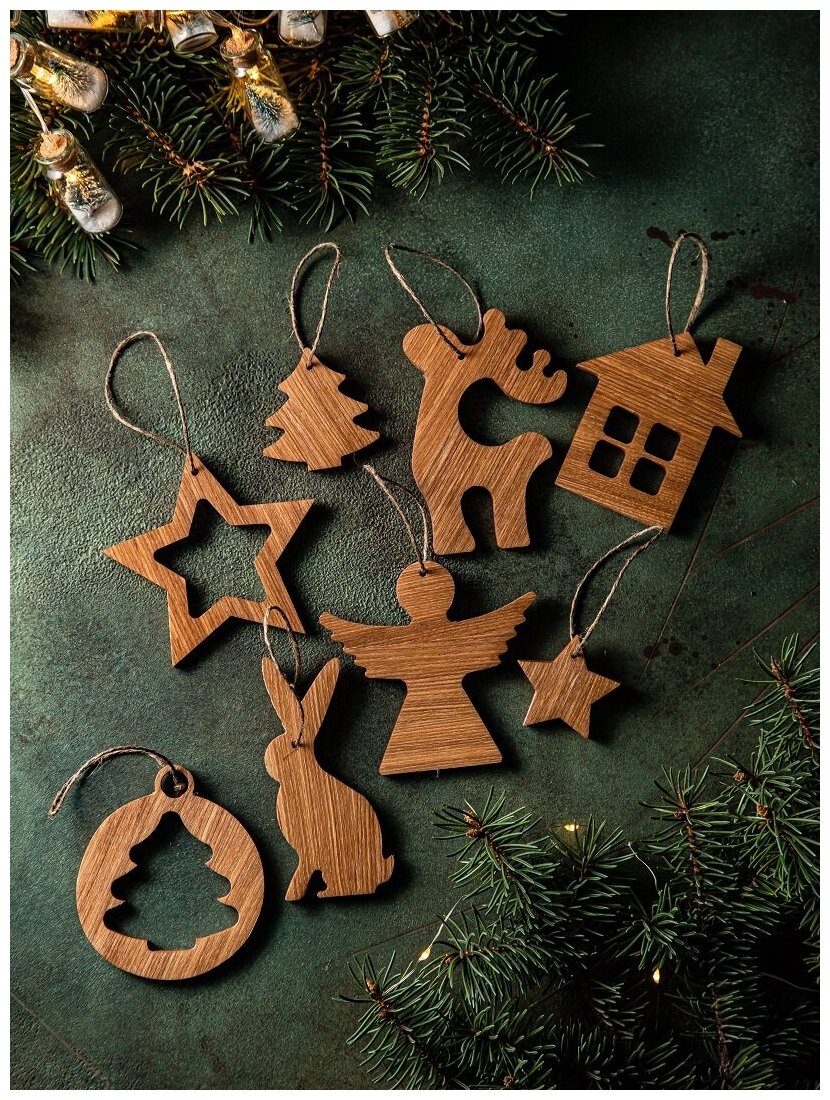 Ёлочные игрушки из дерева, новогодние украшения, набор елочных игрушек 8 штук интересное: