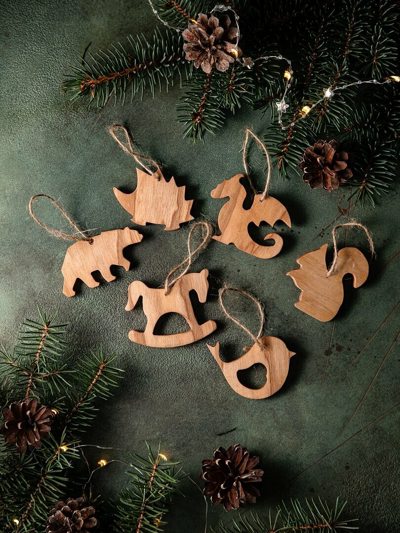 Купить Ёлочные игрушки из дерева, новогодние украшения, набор елочных игрушек 6 штук