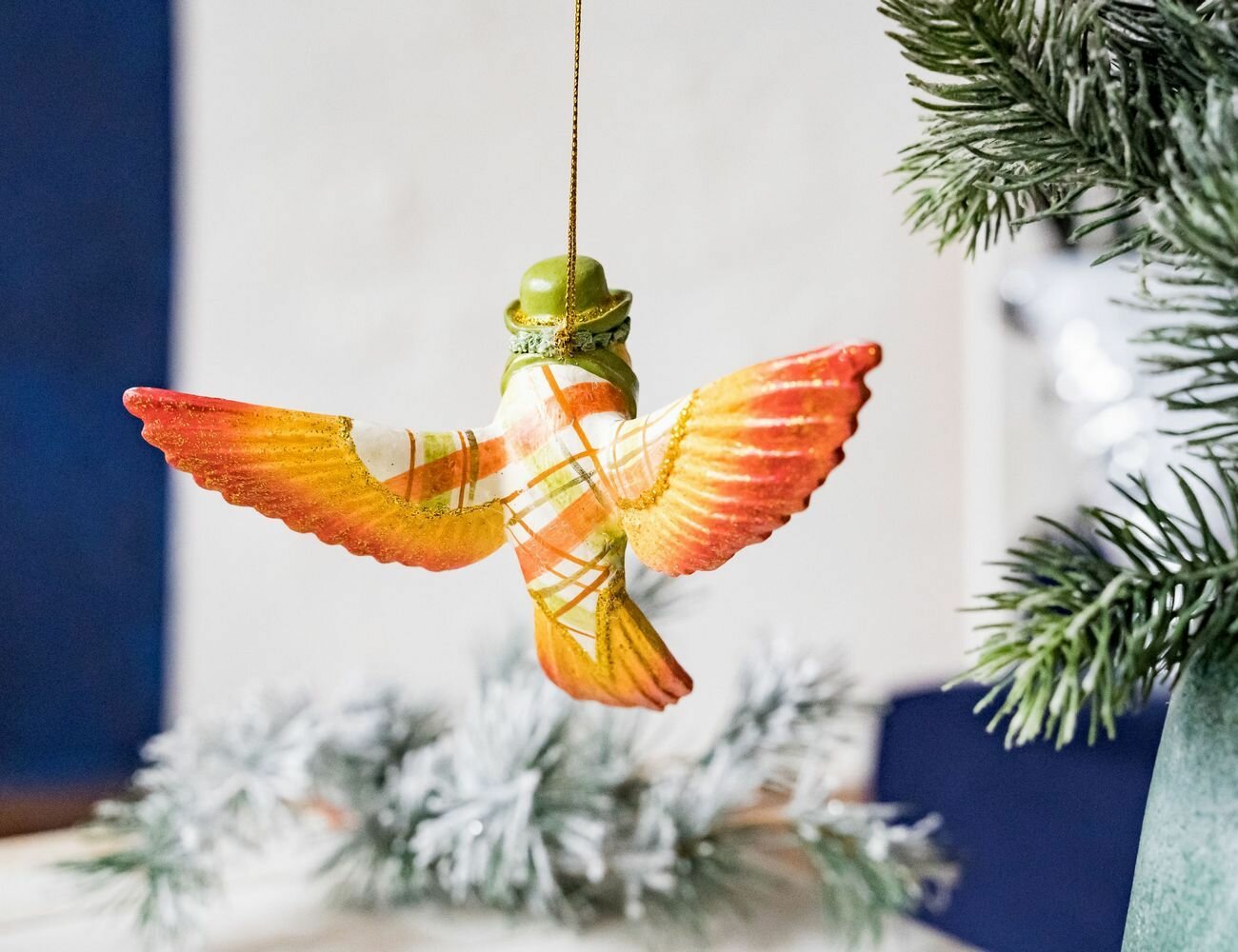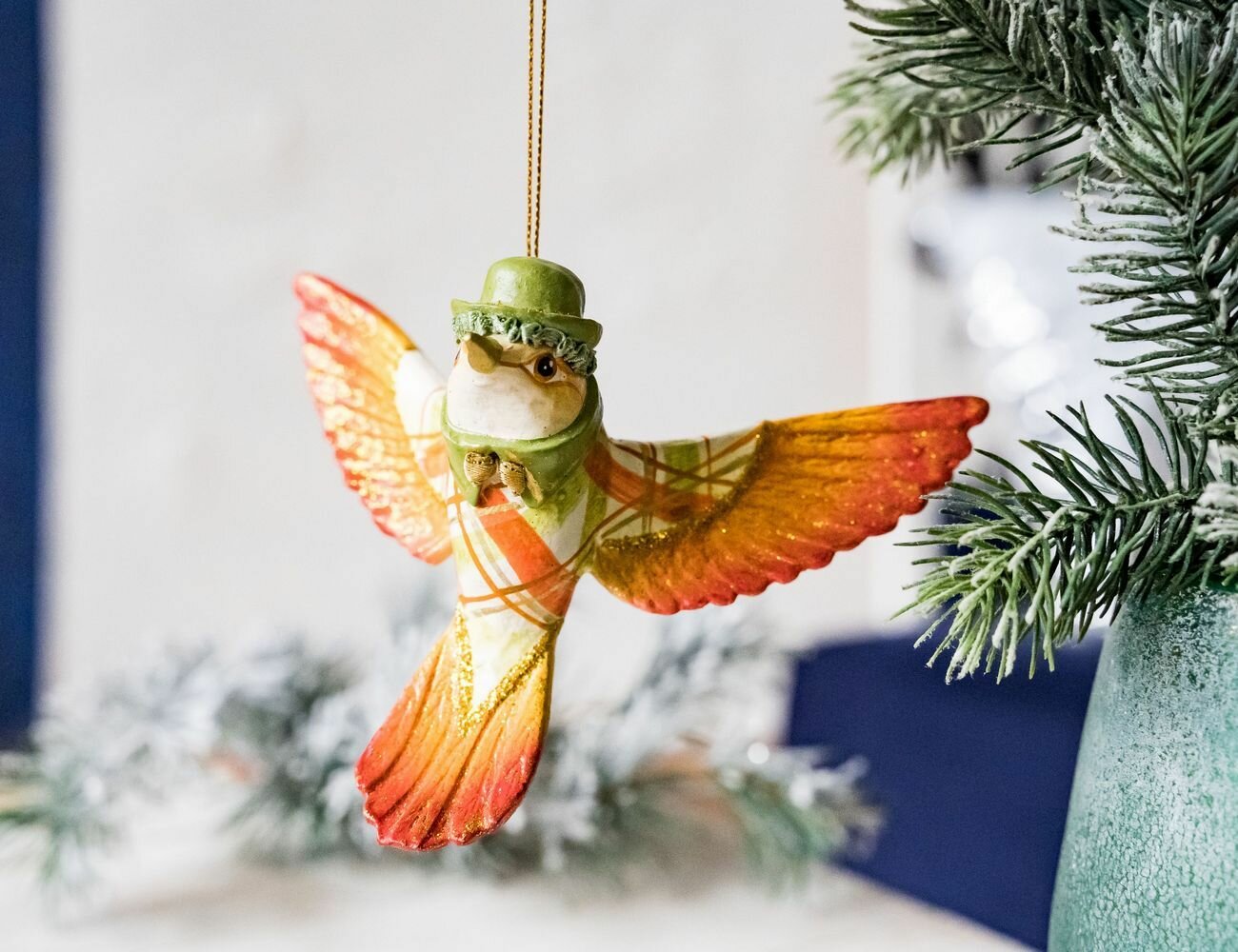 Купить Ёлочная игрушка колибри от-кутюр в зеленой шляпке, полистоун, 11х15 см, подвеска, Goodwill