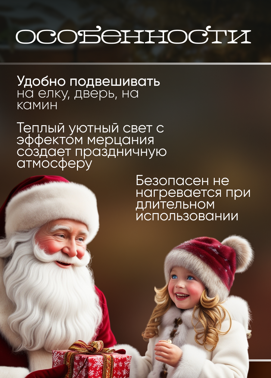 | Дополнительная информация | Преимущества: Продуманный ассортимент, отвечающий современным тенденциям рынка и любым, самым требовательным, запросам наших клиентов; Высокое качество сборки и многоступенчатый контроль качества на всех этапах производства; Неповторимая праздничная упаковка Luazon Lighting, доставляет радость и атмосферу праздника каждому покупателю; Возможность с помощью освещения создать собственную неповторимую атмосферу; Комфортная для глаз цветопередача. |