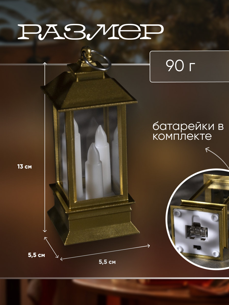Купить Фигура светодиодная "Фонарь цвет золото с тремя свечами", 13х5.5х5.5 см, 3xAG13, Т/белый