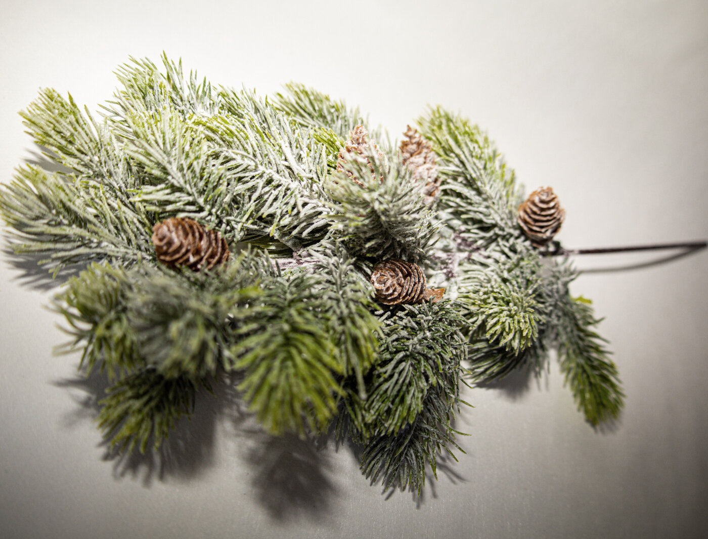Еловая ветка искусственная, набор 3 ветки, 1 белая и 2 зеленые, декор зимний, рождественский, 42 см