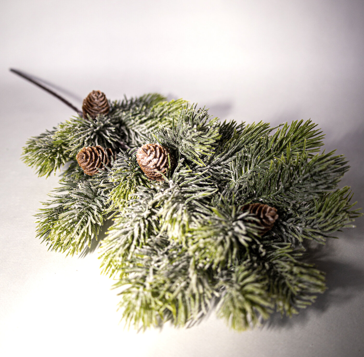 Еловая ветка мини, заснеженная, букет 20 см, набор 2 шт.