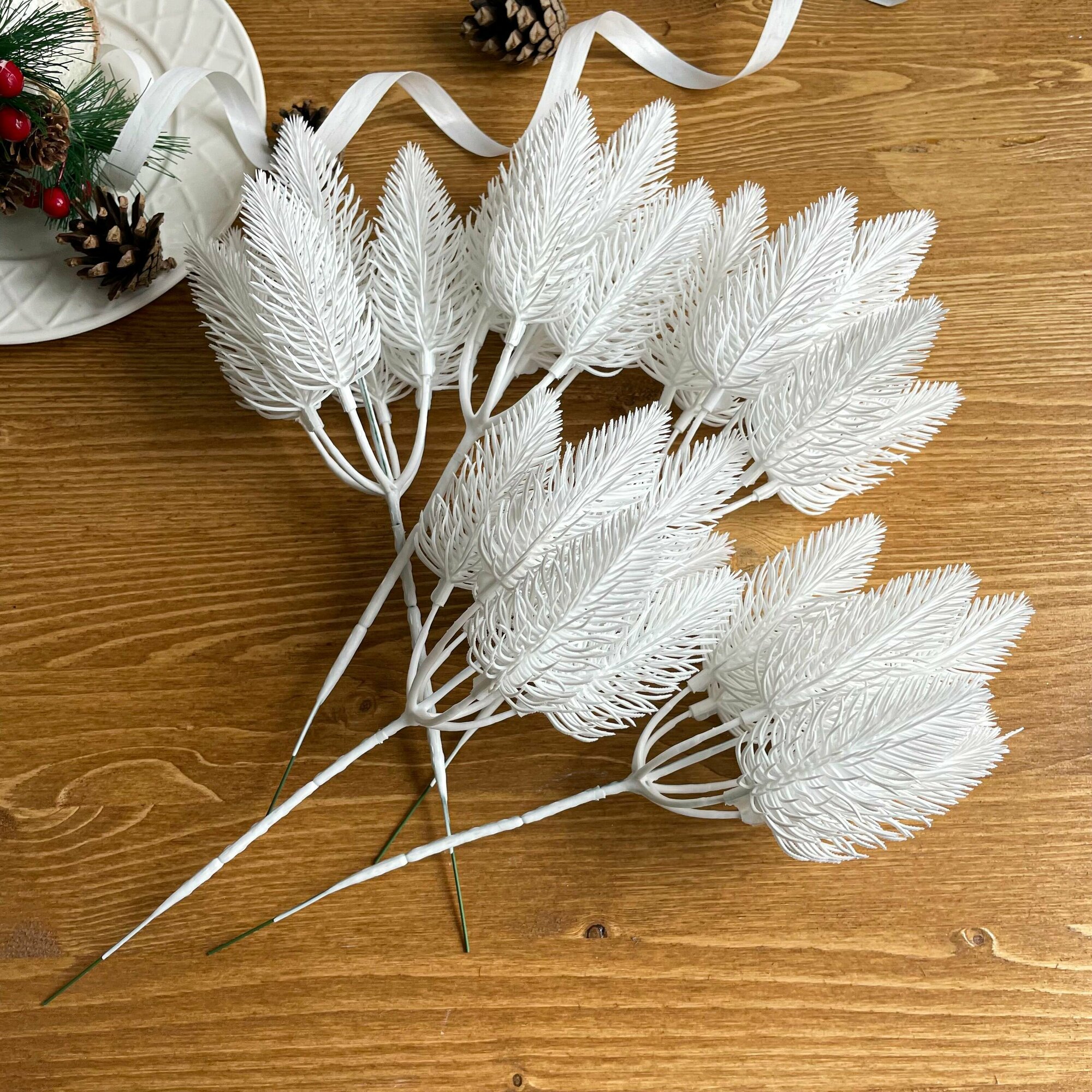 Еловые ветки искусственные, 30 см, Лапки 7,5 см, 15 лапок на ветке, набор 5 шт